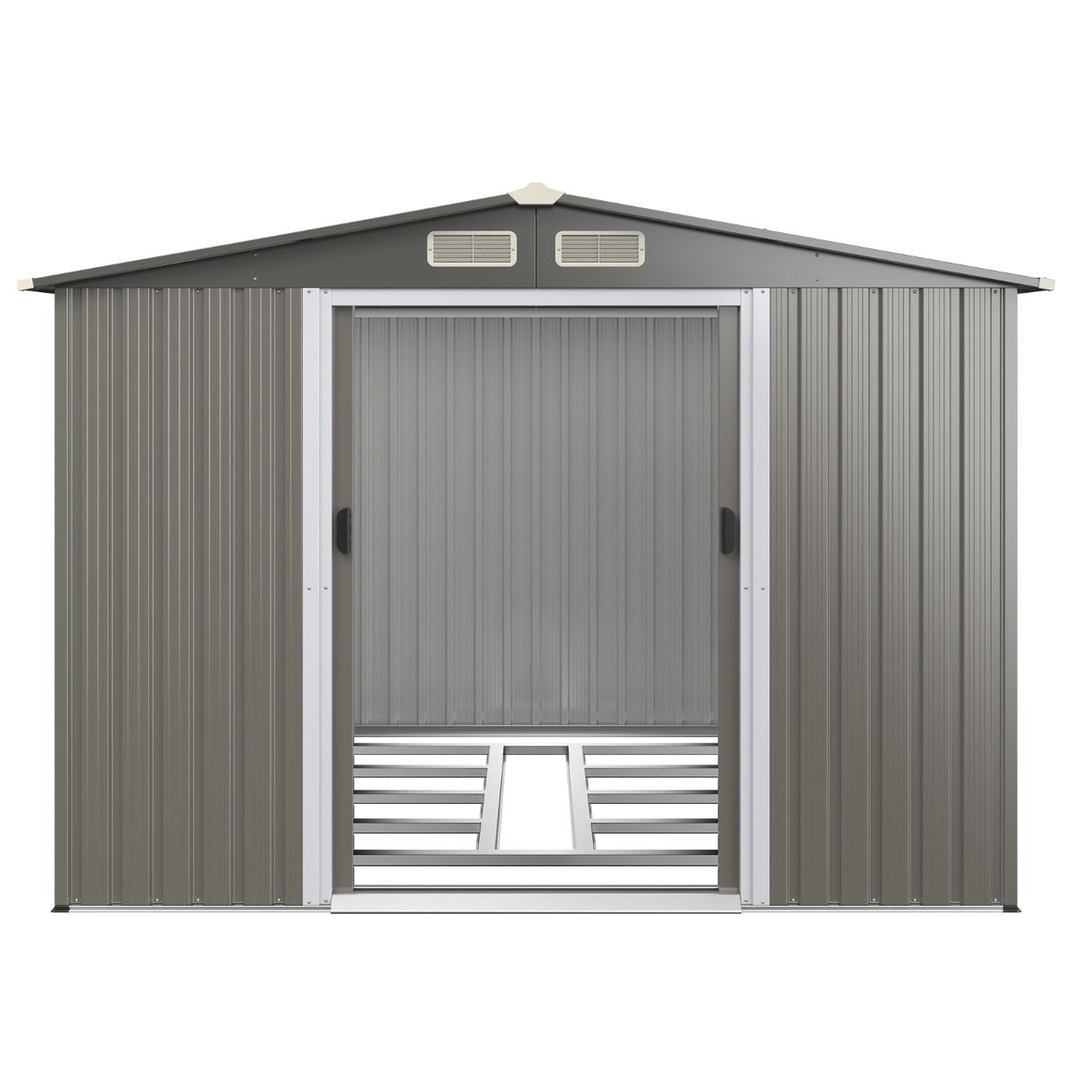Abri de jardin en métal 260 x 207 x 181 cm pour rangement sécurisé et accès facile, design moderne gris clair 20_0010008