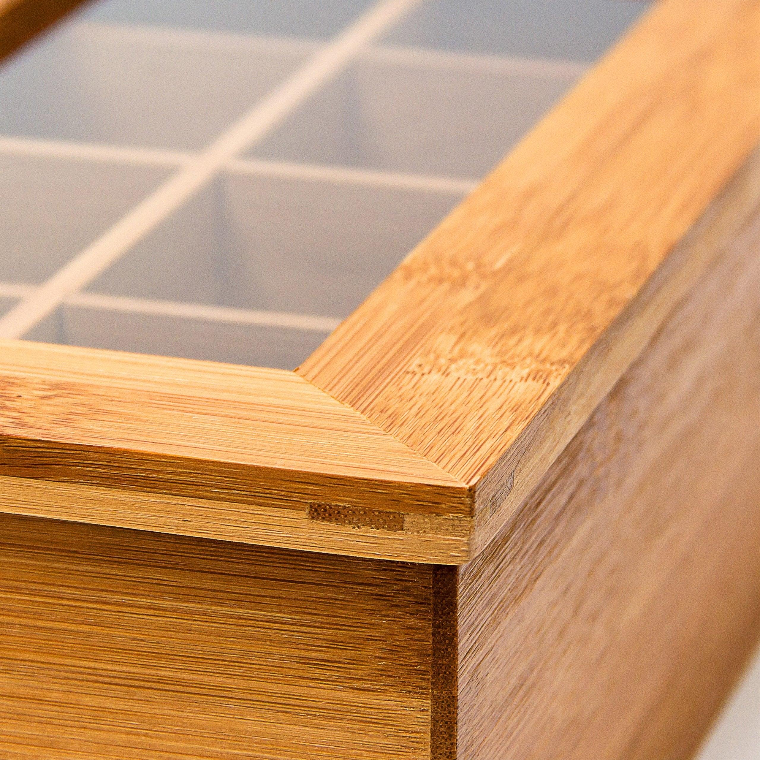 Boîte à thé en bambou 8 compartiments Coffret sachets thé vrac cuisine 28 cm beige 4313041
