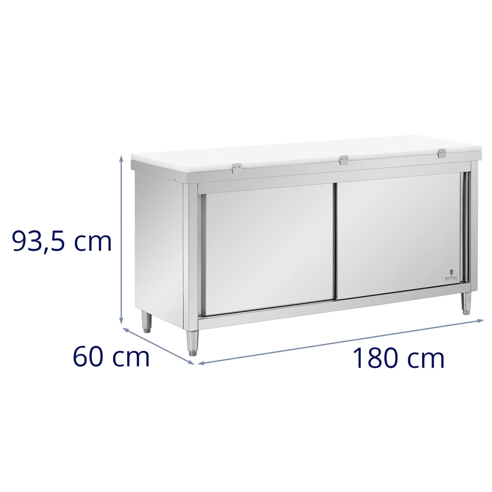 Meuble bas de cuisine professionnel 180 x 60 cm 500 kg avec plaque à découper acier inoxydable 14_0009338