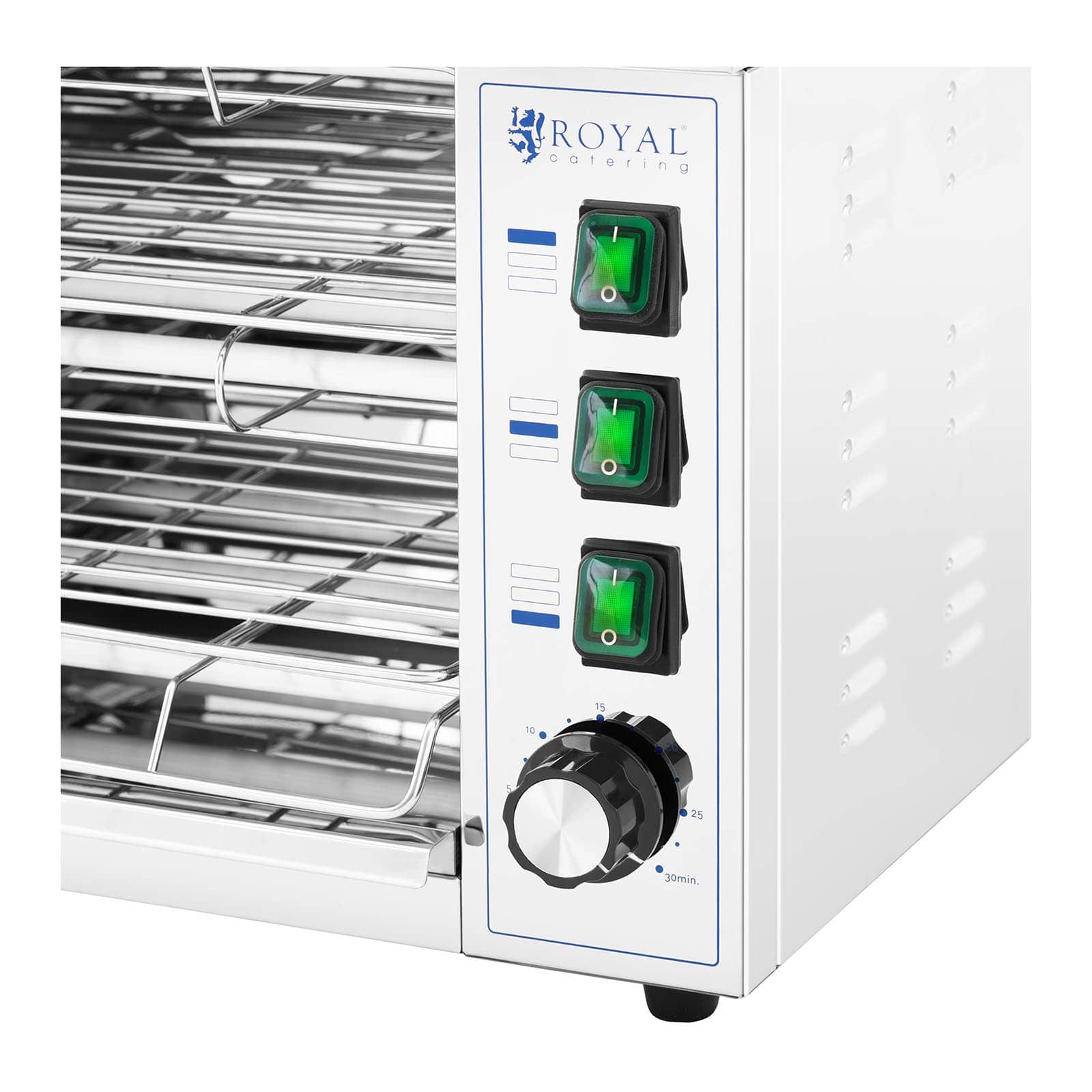 Ce four salamandre est muni d’un élément chauffant qui atteint très vite la température souhaitée grâce à sa puissance de 3 250 W.