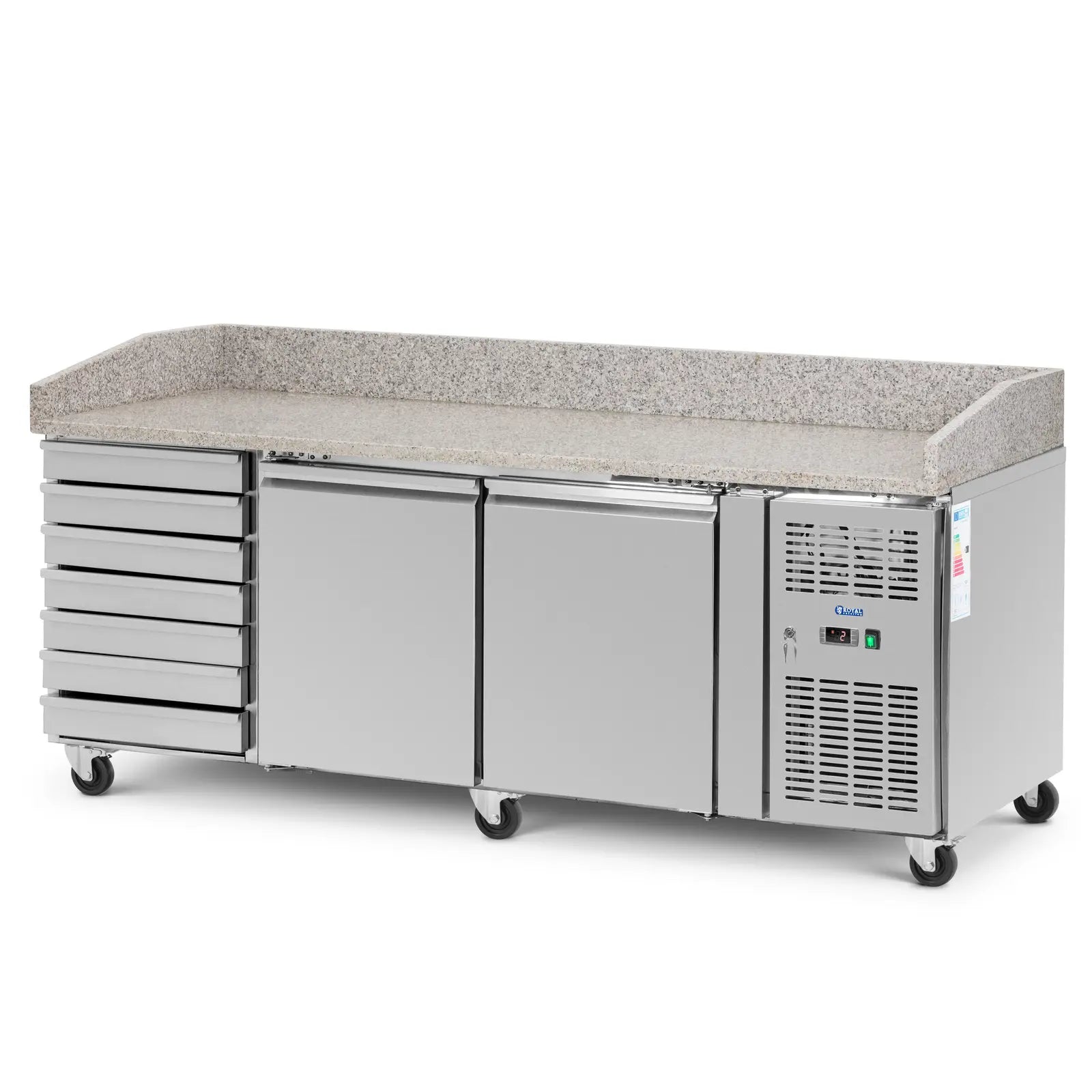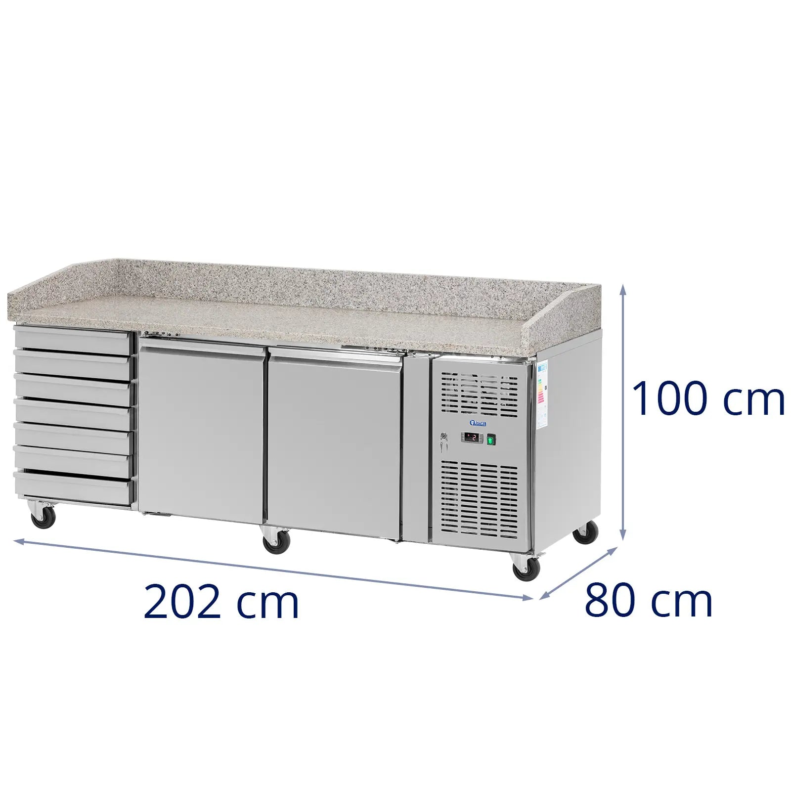 Rangement spacieux – table réfrigérée d'une grande capacité de 390 l avec 2 compartiments, 7 tiroirs et un plan de travail en granit de 202 x 80 cm