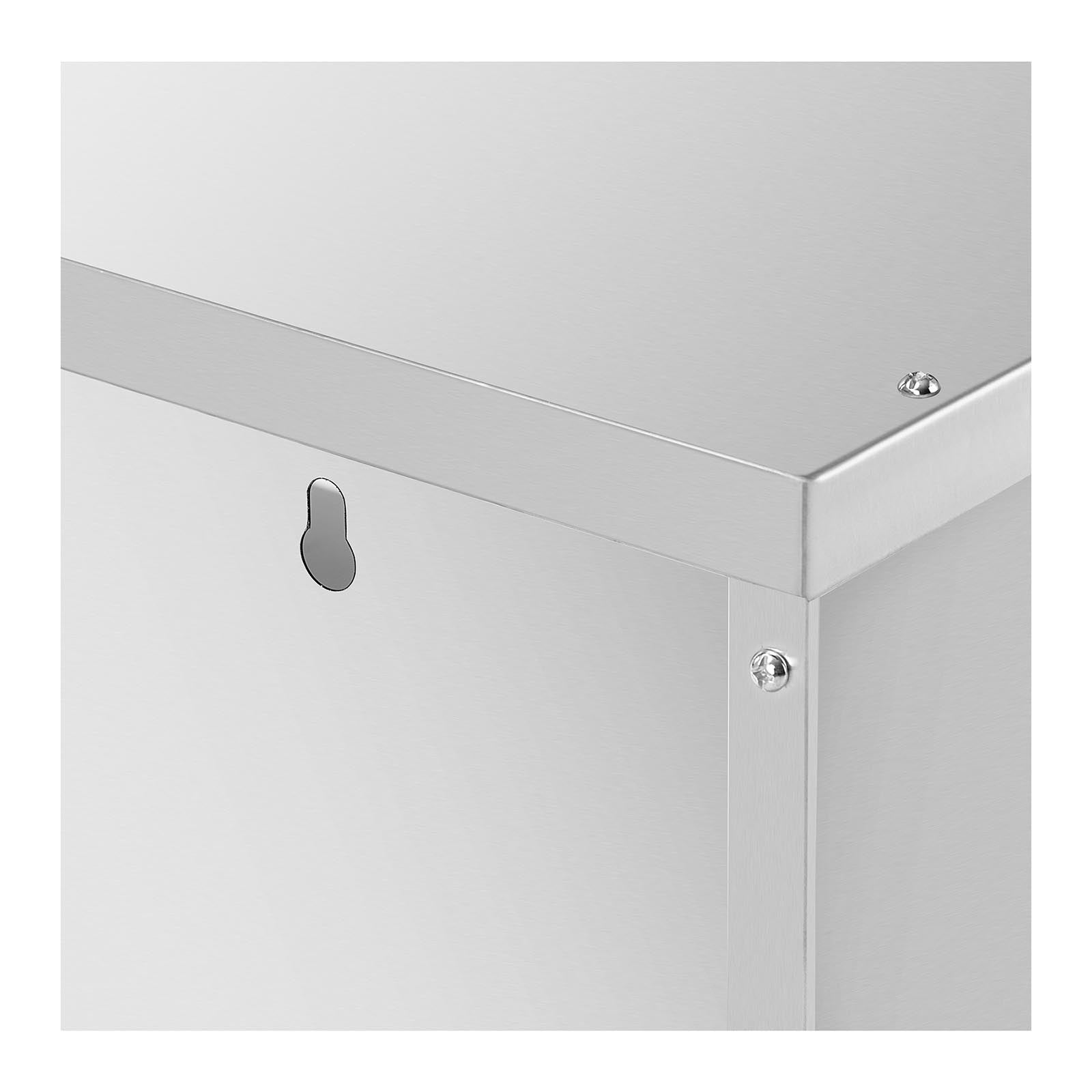 Une tablette centrale divise l’espace de façon optimale à l'intérieur du placard suspendu en inox.