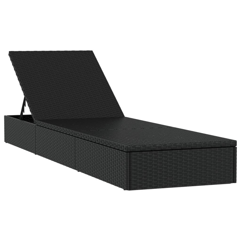 Transat chaise longue bain de soleil avec table résine tressée noir 02_0012207
