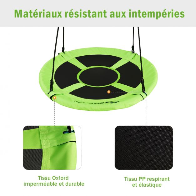 Balançoire ronde diametre 100 cm balançoire suspendue nid d’oiseau pour arbre hauteur réglable capacité 150 kg vert et noir 20_0007785