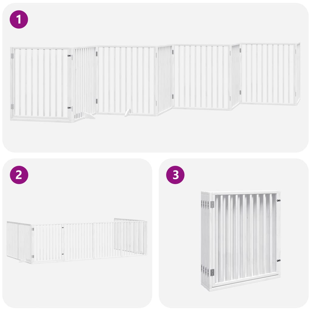 Barrière de sécurité pour chien animaux de compagnie porte pliable 8panneaux bois peuplier blanc 02_0023264