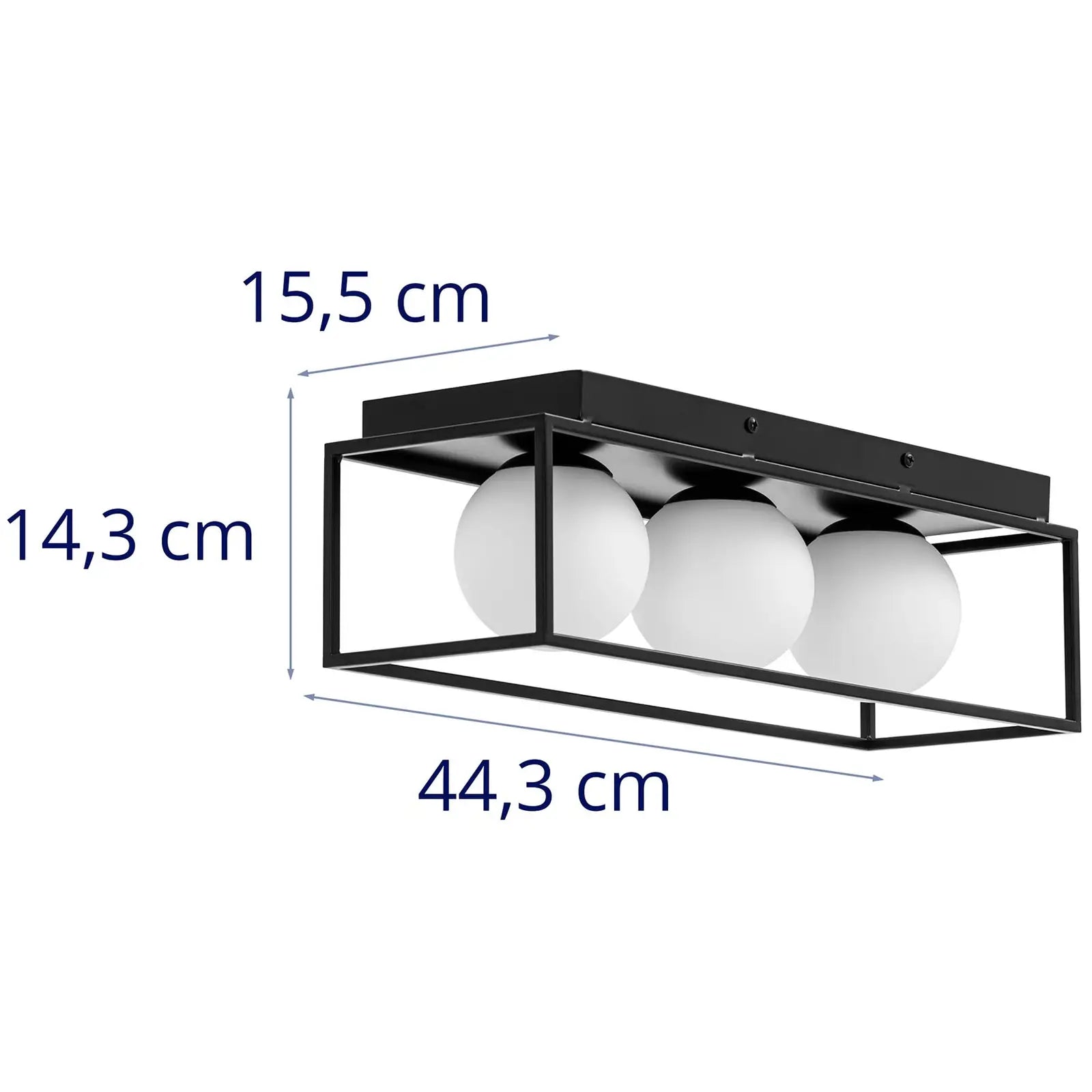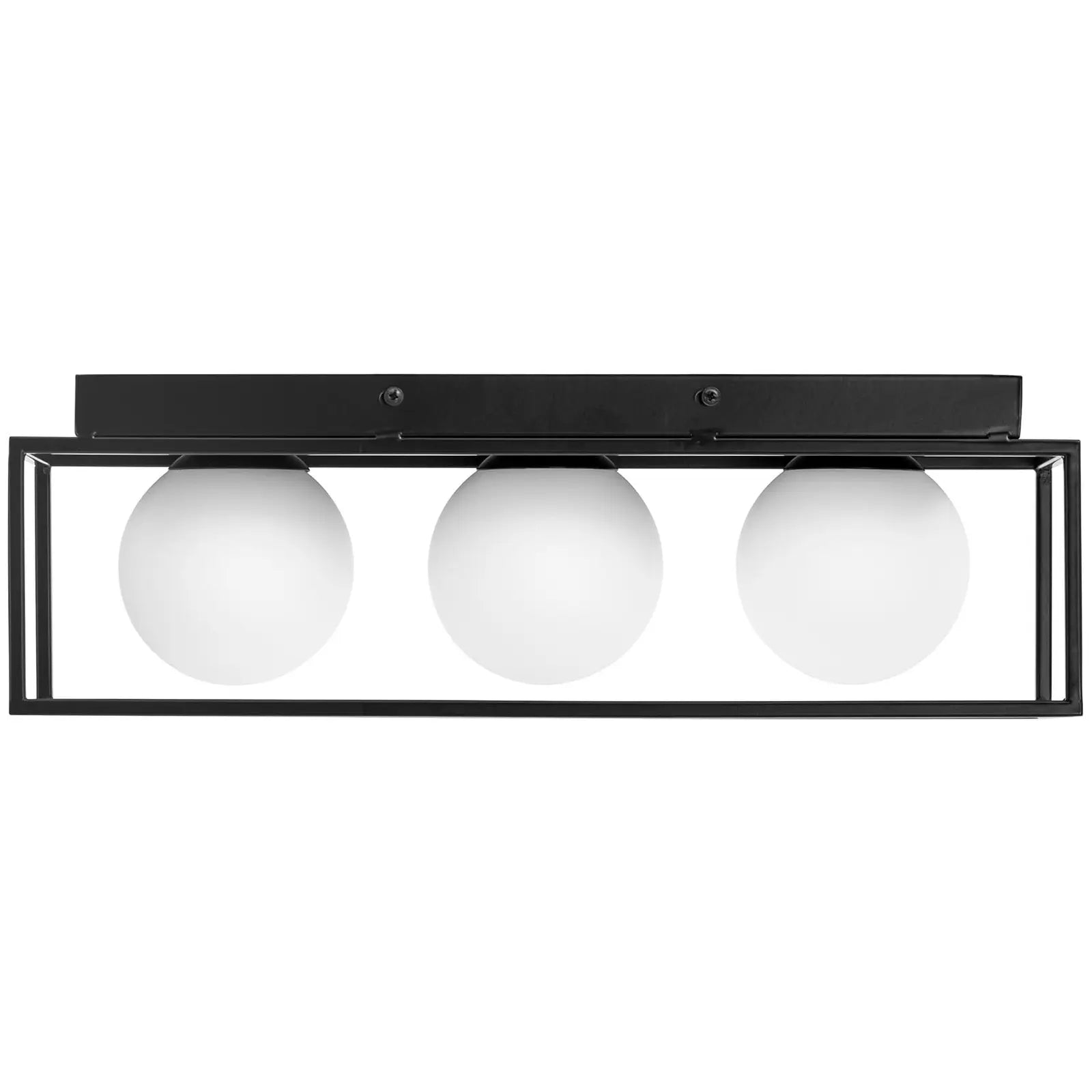 Plafonnier 3 boules de verre et cadre en fer verre fer noir blanc mat 14_0009522