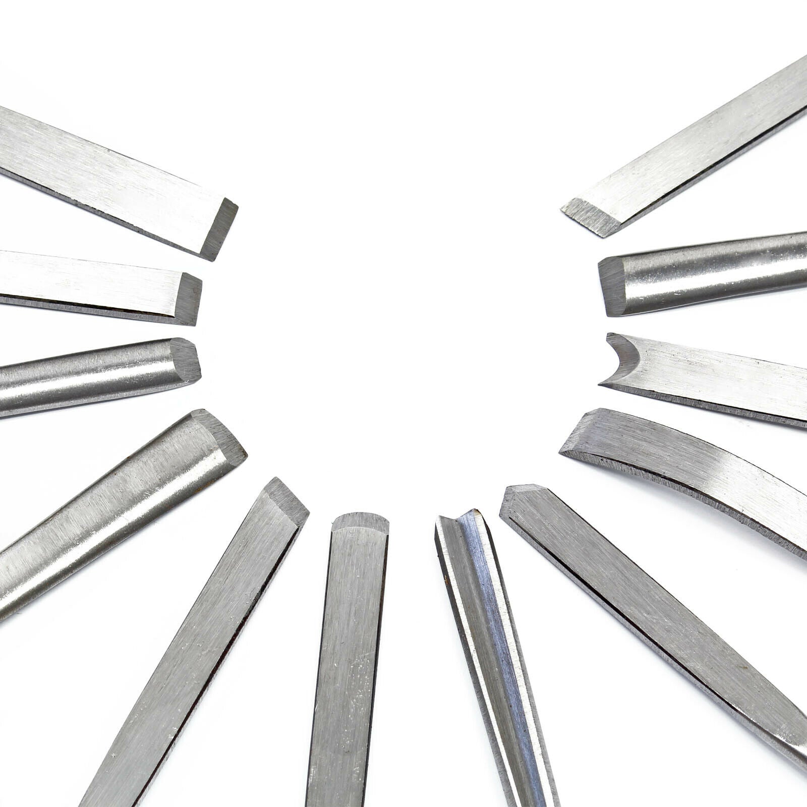 Pour ce travail, le kit comprend 12 différents fers à sculpter – appelés ciseaux à bois – avec différentes lames de coupe, qui vous permettront de vous lancer directement dans le façonnage du bois.