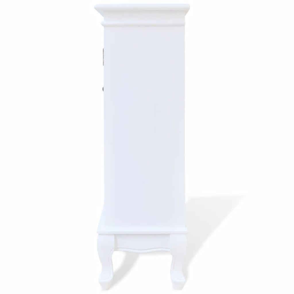 Cette armoire est construite à partir de MDF et de pinède de haute qualité avec une finition peinte en blanc pour plus de durabilité, ce qui vous donne des années de service.