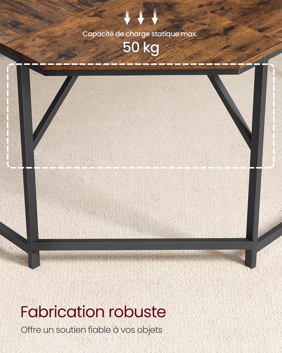 Style élégant : Le plateau rustique, le cadre métallique noir et la forme en L unique apportent un charme exceptionnel à votre pièce.