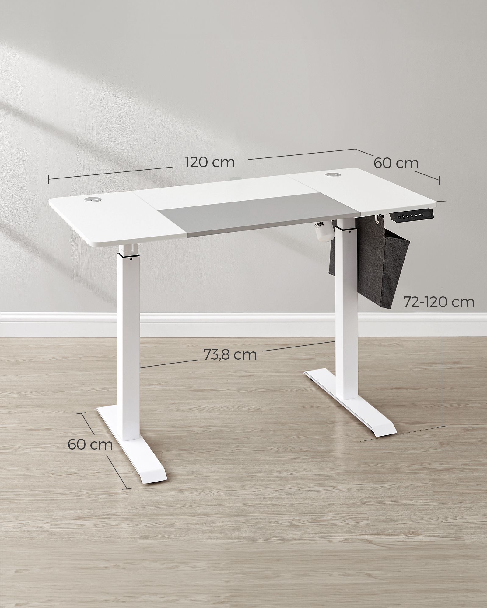 Bureau assis debout électrique 60 x 120 x (72-120) cm table réglable en hauteur mémoire 4 hauteurs pochette cadre en acier dessus de table épais blanc 12_0004548