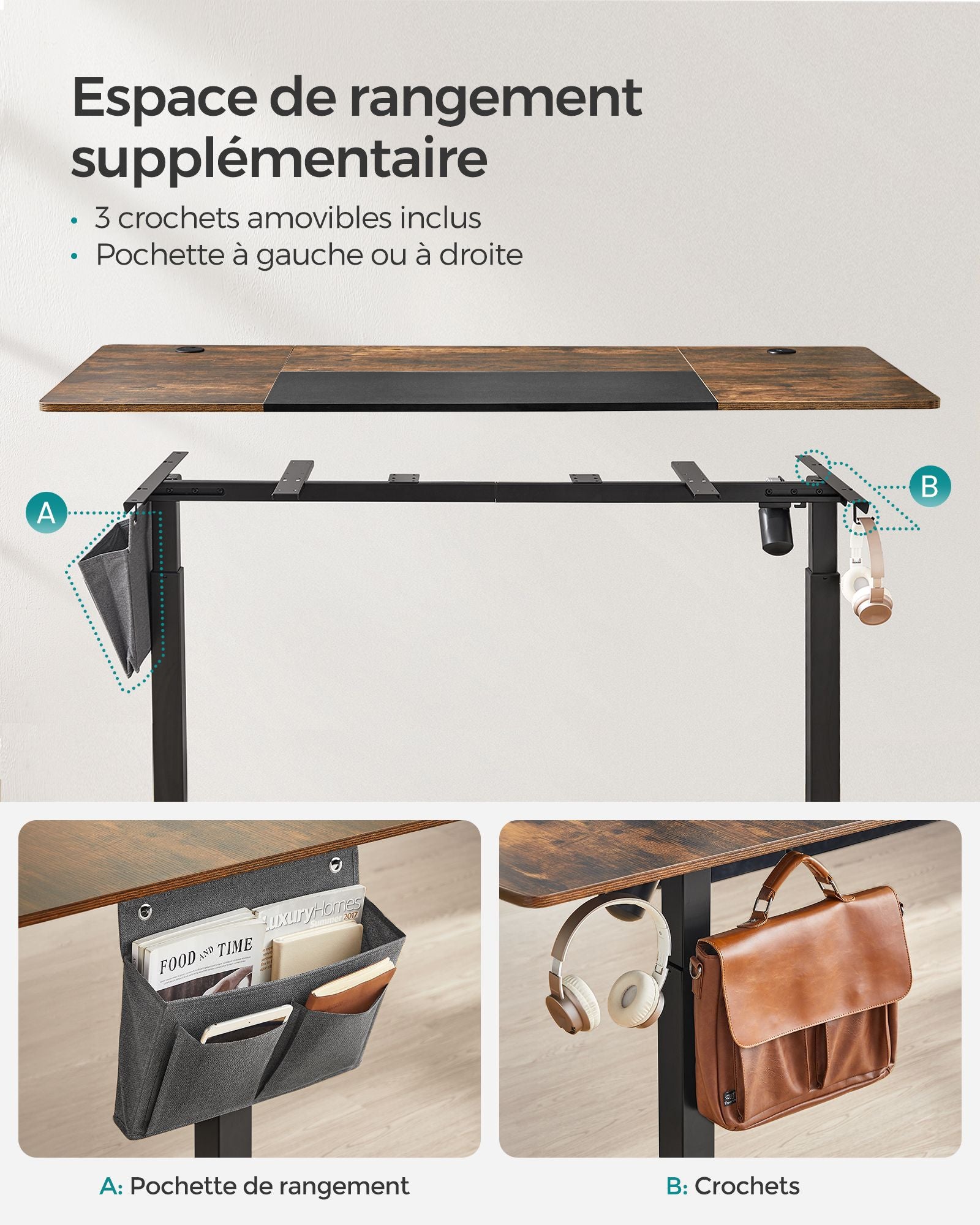 Ce bureau électrique est doté d'un cadre en acier stable, il supporte jusqu’à 80 kg. Son un bruit de fonctionnement est inférieur à 50 dB