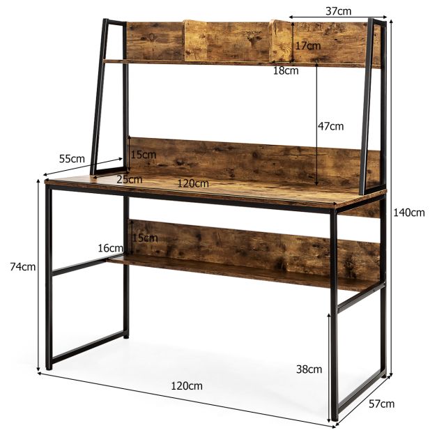 Bureau avec niche et bibliothèque table d'étude de 120 cm table de travail pour ordinateur portable peu encombrant marron rustique 20_0007969