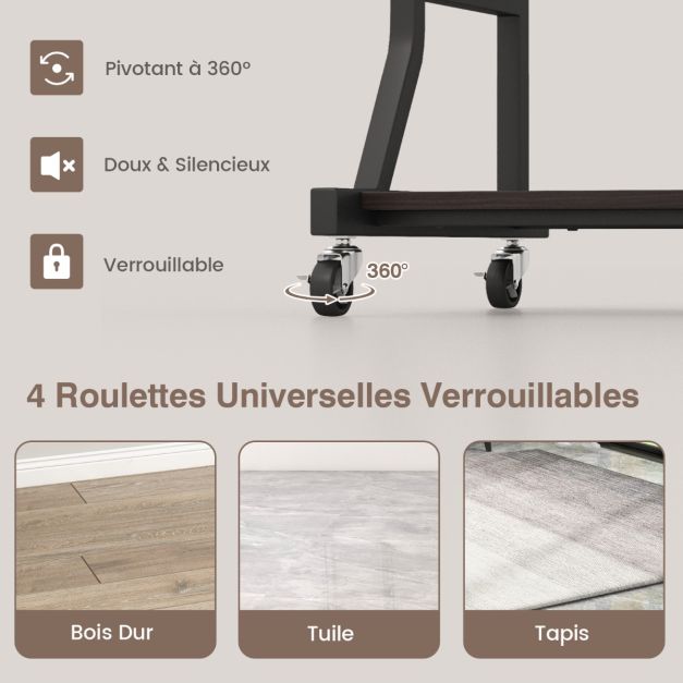 4 roulettes avec freins maintiennent le bureau mobile en place