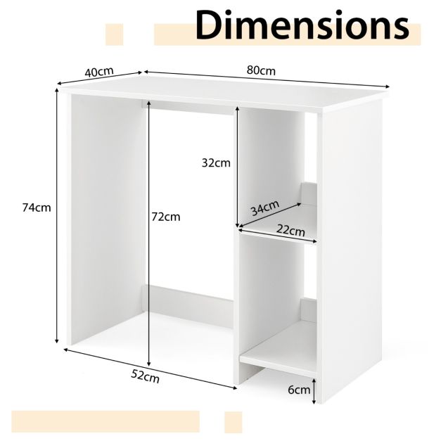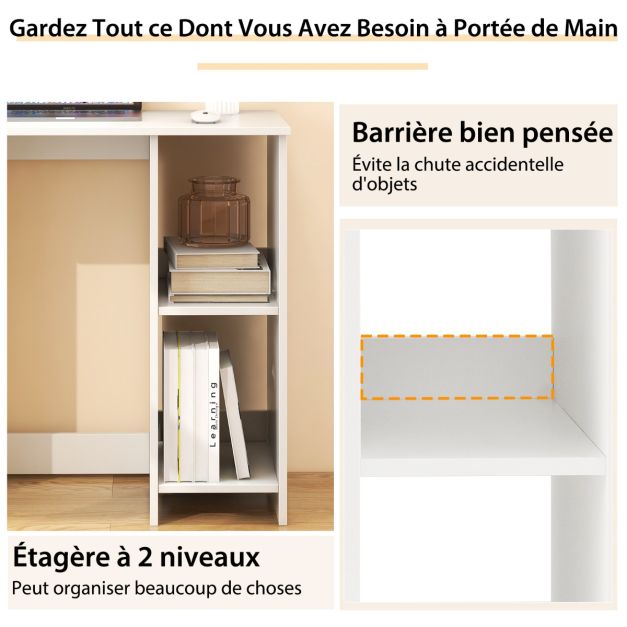 Bureau d'ordinateur table de travail pour petit espace avec 2 compartiments bureau informatique 40 x 80 x 74 cm blanc 20_0007990