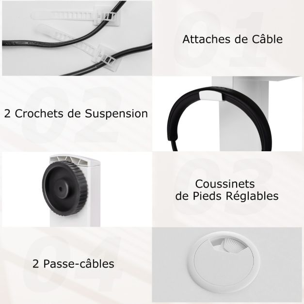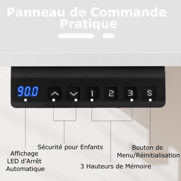 Bureau electrique avec 3 réglages de hauteur à mémoire bureau réglable en hauteur 2 crochets de suspension blanc 20_0007999