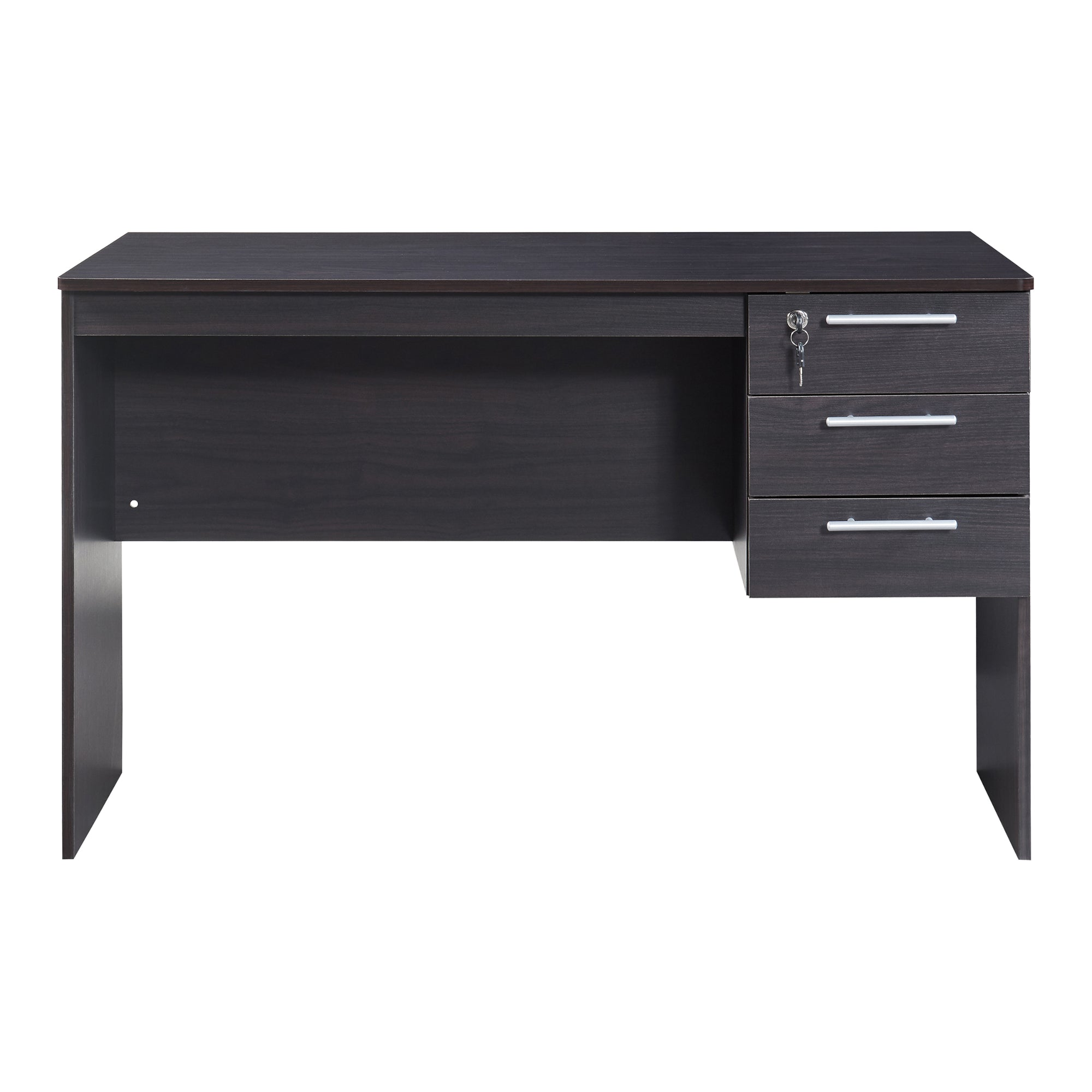 Notre bureau, à la fois élégant et polyvalent, s'adapte parfaitement à votre espace de travail à domicile, votre coin télétravail, ou même votre salon. Son design intemporel lui permet de se fondre harmonieusement dans tous les styles d'intérieur. Avec des dimensions généreuses, ce bureau offre amplement d'espace pour toutes vos fournitures de bureau. Son plateau accueille confortablement votre ordinateur, vos carnets de notes, vos stylos, tandis que ses 3 tiroirs avec serrure offrent de l'espace de rangement sécurisé pour vos livres et autres articles essentiels.