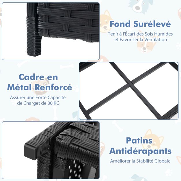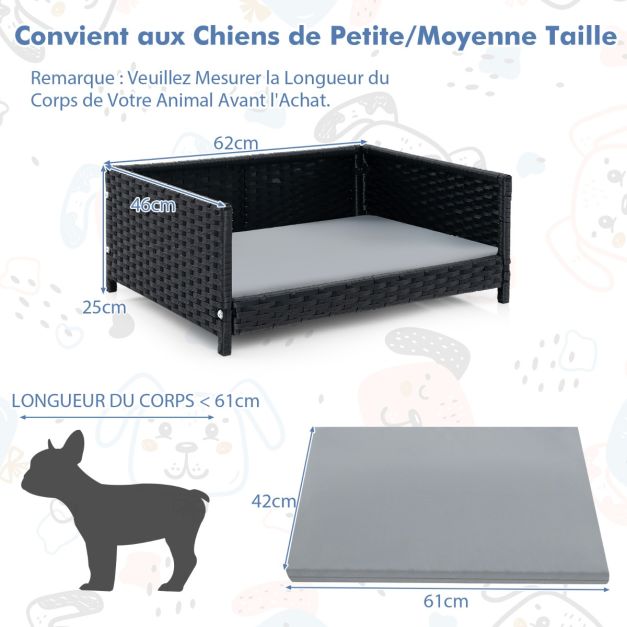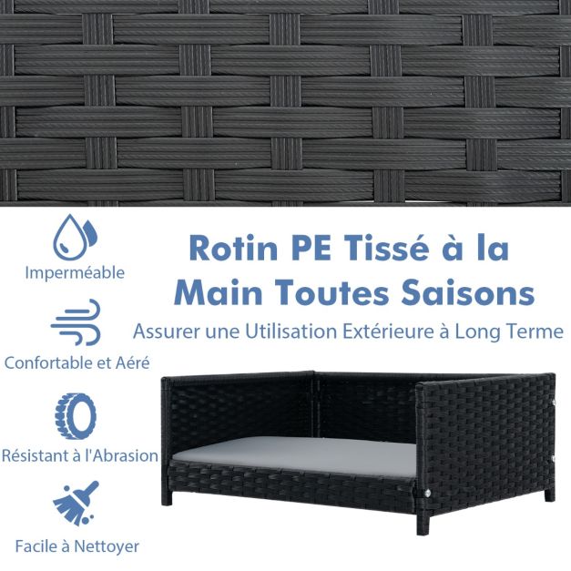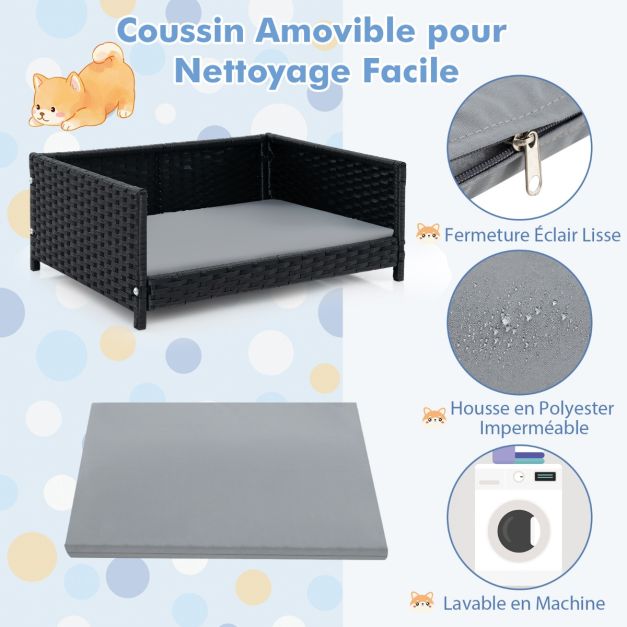 Lit pour chien en rotin canapé-lit pour animaux de compagnie coussin doux imperméable cadre en métal lit pour taille petite et moyenne 20_0008726