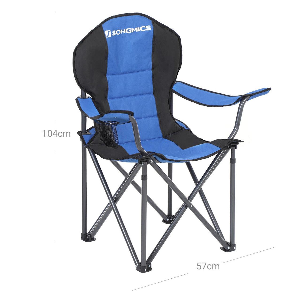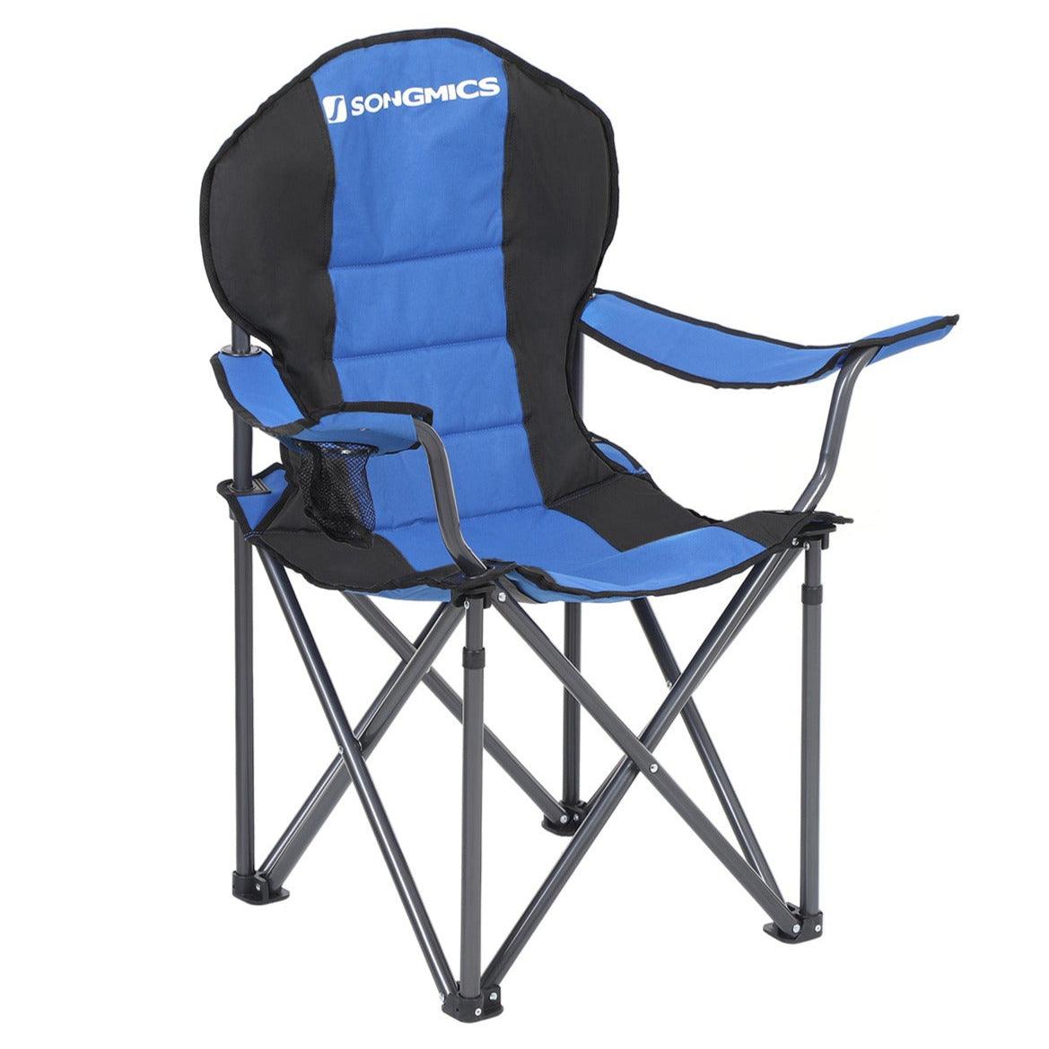 Chaise de camping pliante chaise pliante assise confortable avec rembourrage en mousse avec porte-bouteilles charge maximale chaise d'extérieur charge maximale 250 kg bleu 12_0001550
