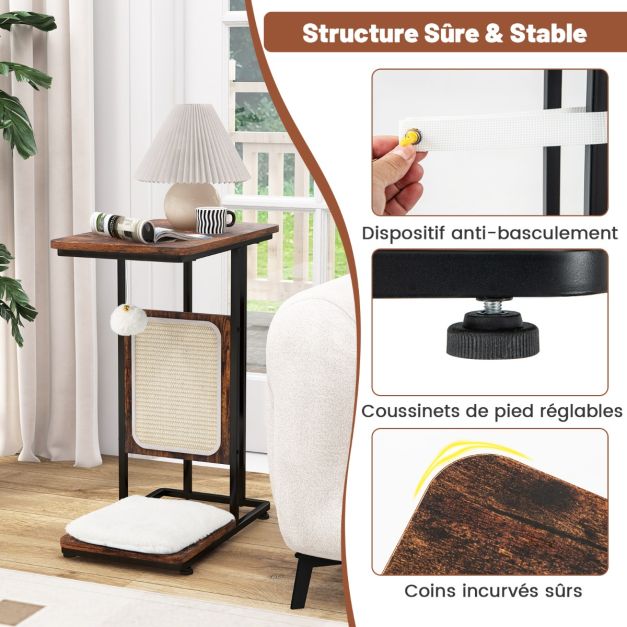 2 en 1 arbre à chat 64cm griffoir pompon suspendu coussin amovible structure en forme de C style industriel café 20_0007528