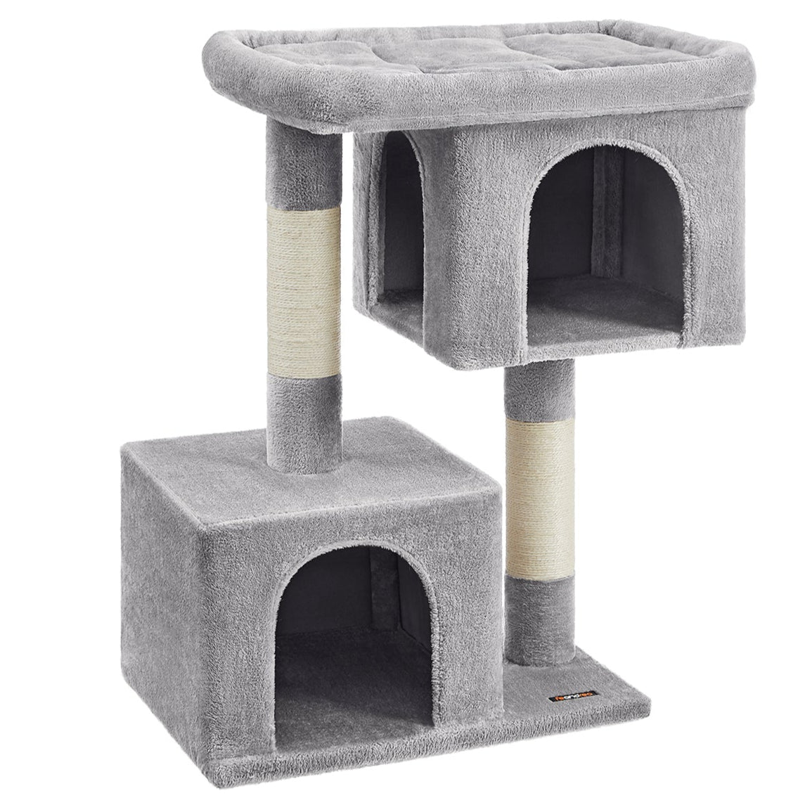 Arbre à chat colonne en sisal pour aiguiser les griffes 2 niches 68 x 48 x 101 cm luxueuses maison de jeu meubles pour chatons chats et félins couleur grise 12_0003825