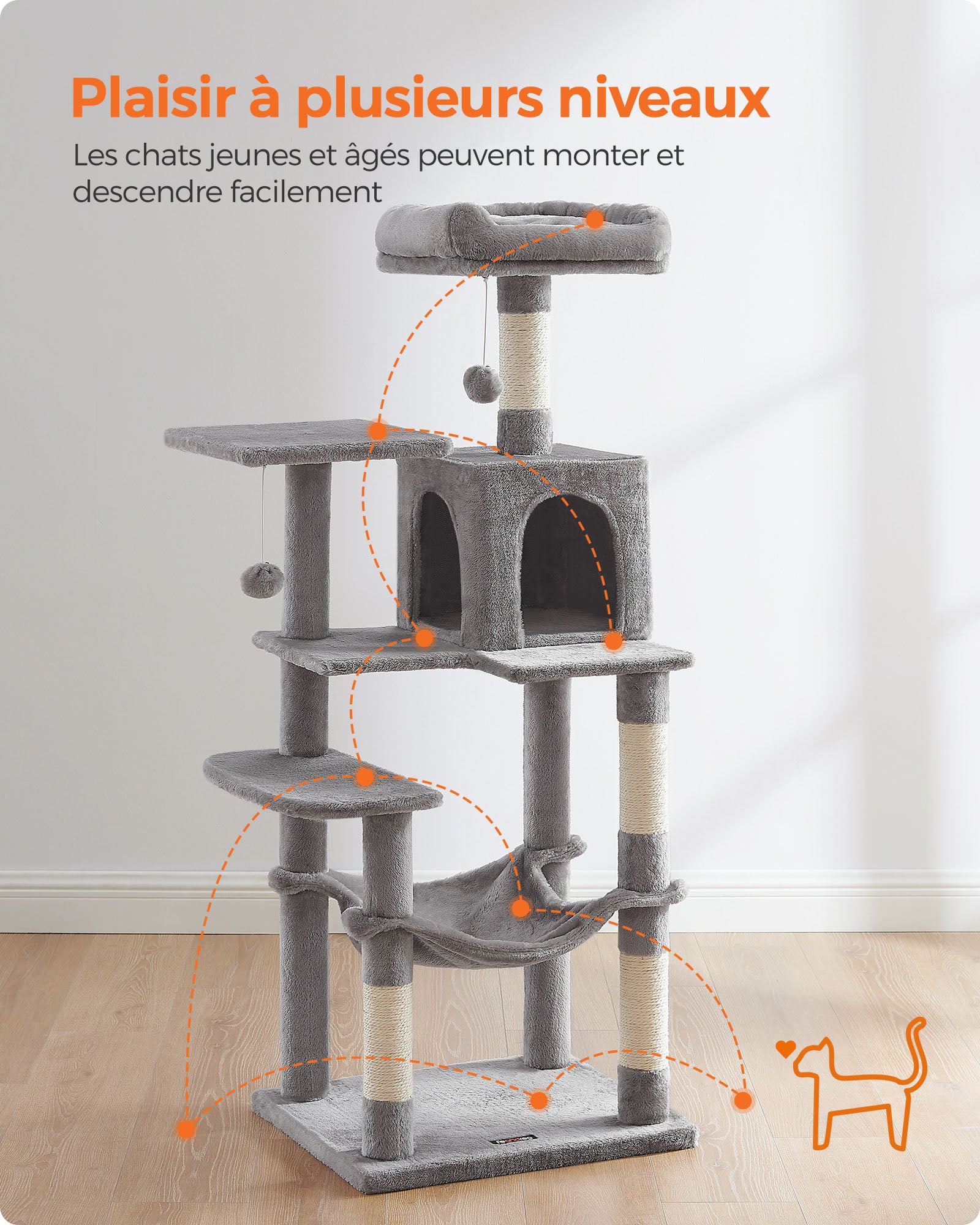 Arbre à chat hamac tour de jeux 143 cm gris clair 12_0003845