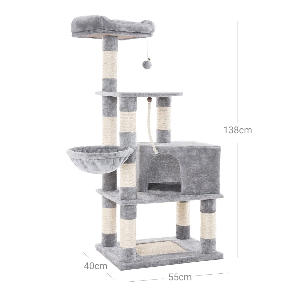 Hauteur de 138 cm, adaptée aux félins pour jouer et se reposer.