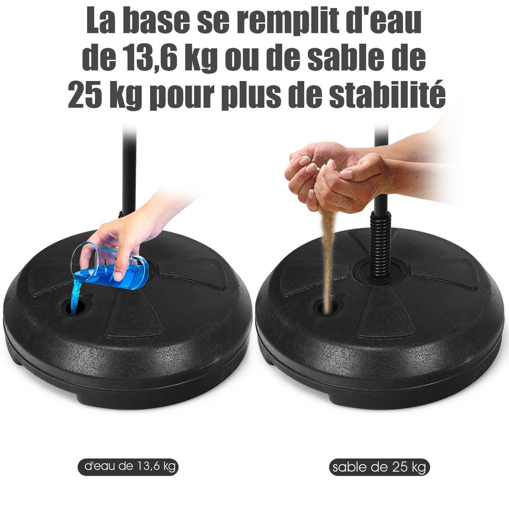 Base à remplir avec de l’eau ou du sable pour assurer une bonne stabilité