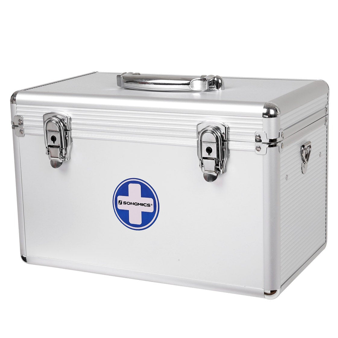 Premiers secours portables médecine stockage pill box médecine drug sangle de transport avec poignée de transport barres en aluminium abs argenté 12_0001637