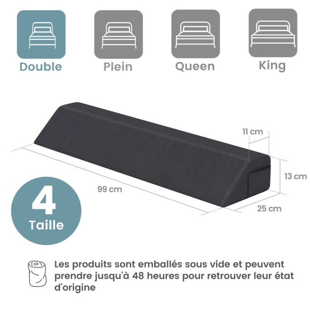 Plus aucun objet ne glisse entre votre matelas et votre tête de lit grâce à notre oreiller de remplissage trapézoïdal
