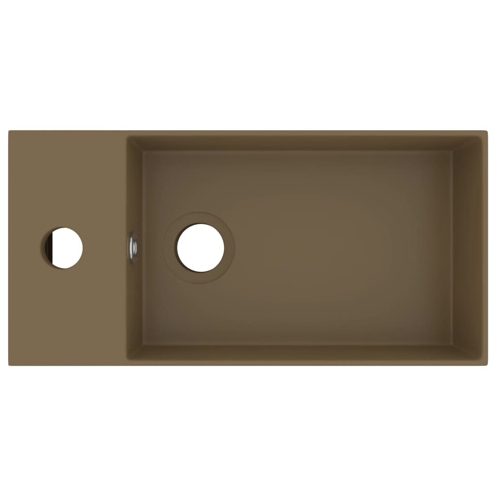 Lavabo de salle de bain avec trop-plein vasque à poser de toilette lave-mains de salle de bain cuisine maison intérieur 48 x 25 cm céramique crème mat 02_0002738