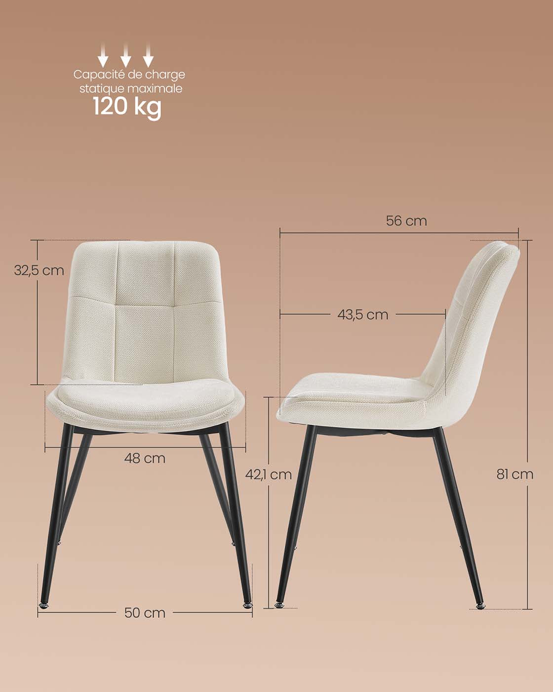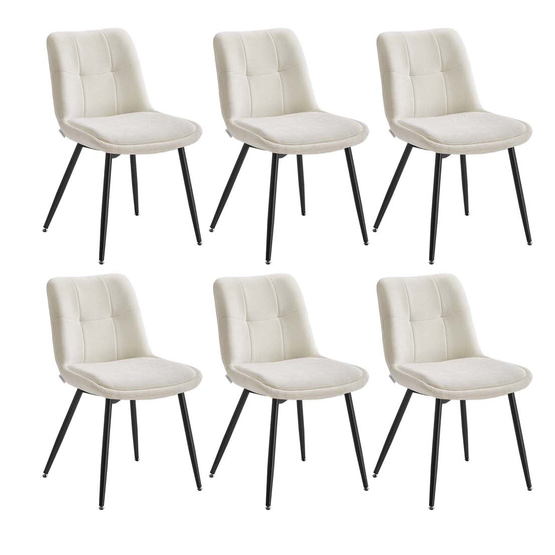 Lot de 6 chaises salle à manger chaise de cuisine rembourrée chenille jusqu’à 120 kg double coussin pieds en métal moderne blanc crème 12_0006215