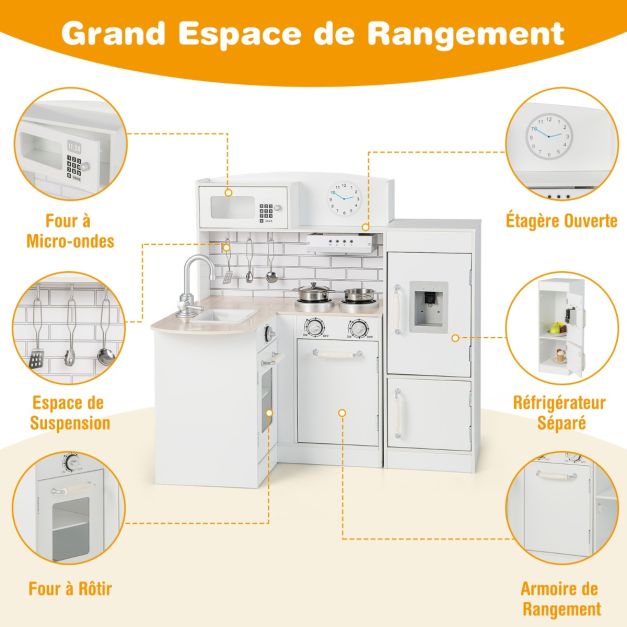 Cuisine pour enfants d' angle réfrigérateur cuisinière de jeu en bois avec distributeur d'eau evier hotte ustensiles 20_0008380