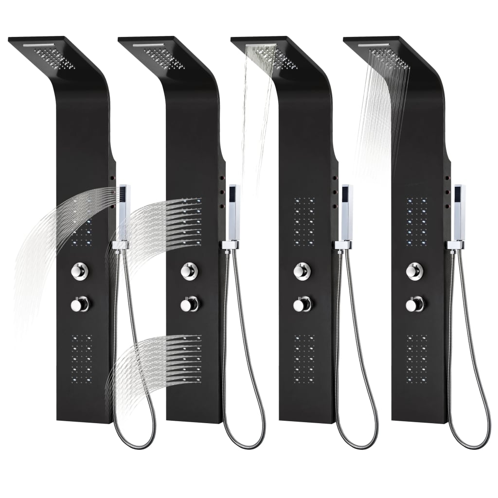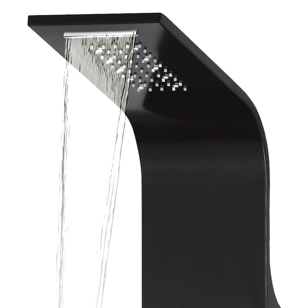 Panneau de douche pomme de douche robinet verre acier inoxydable 130 cm noir 02_0003431