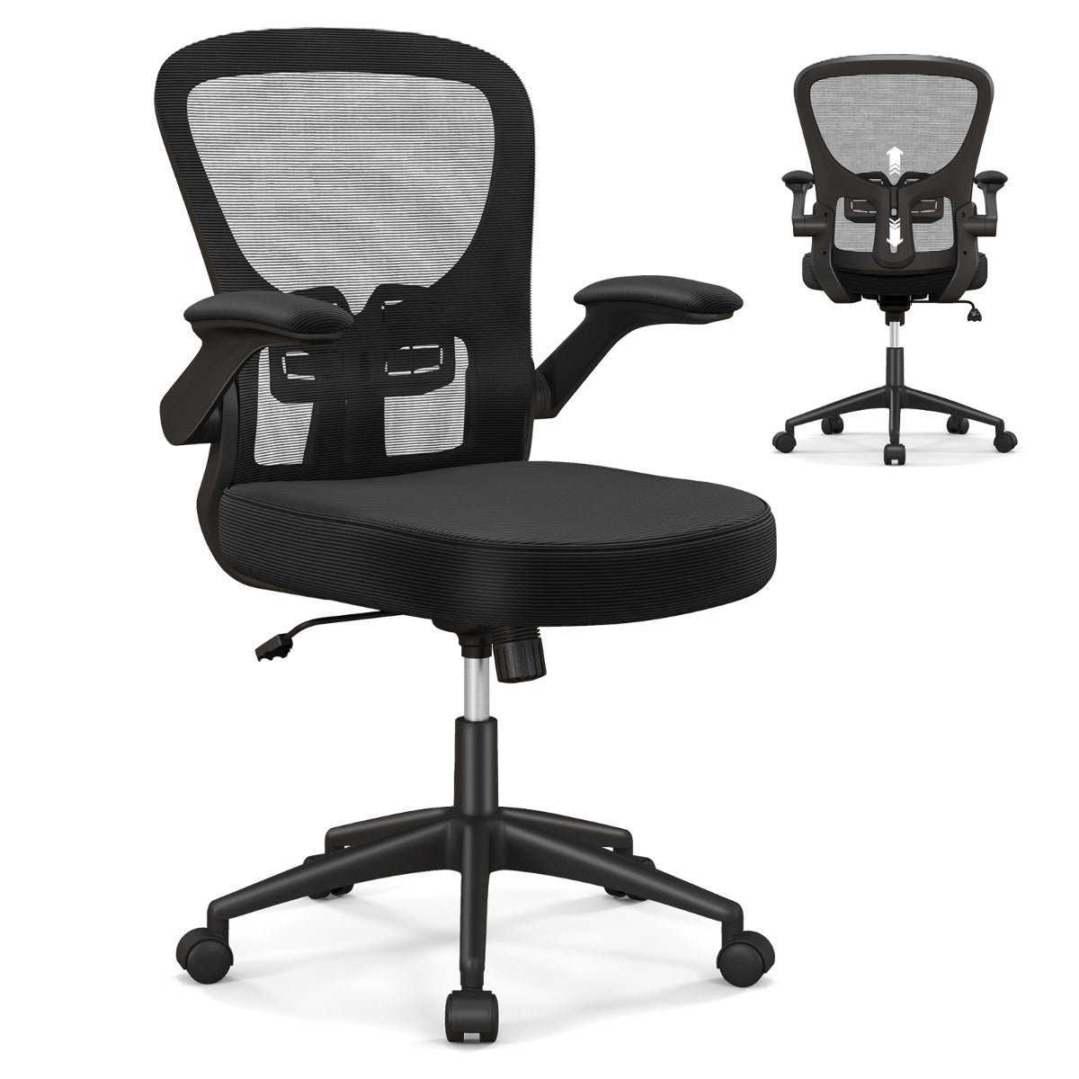 Chaise de bureau ergonomique chaise pivotante avec accoudoirs escamotables soutien lombaire réglable et dossier basculant de 90° à 120° noir 20_0008075