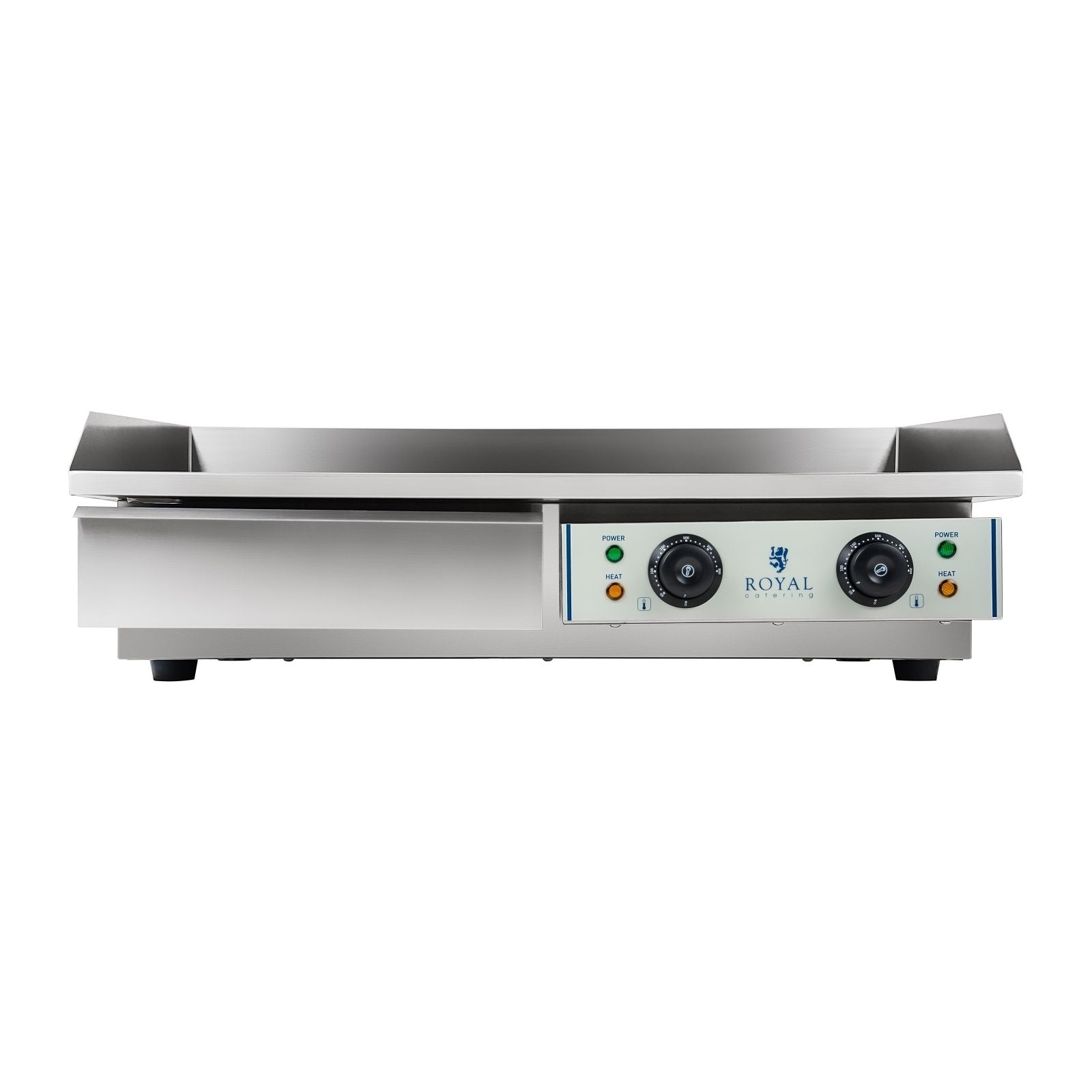 Pour concevoir cette machine de qualité, Royal Catering n'a utilisé que des matériaux durables et solides. Le gril électrique est composé entièrement d'acier inoxydable et est équipé d'une plaque de cuisson d'une largeur de 73 cm.