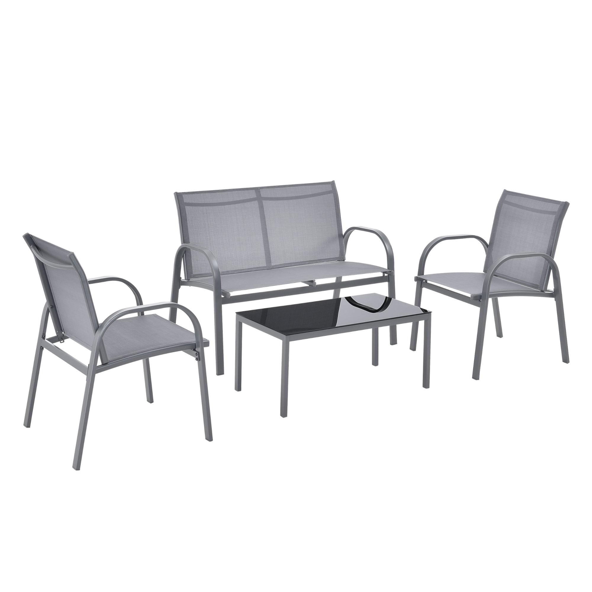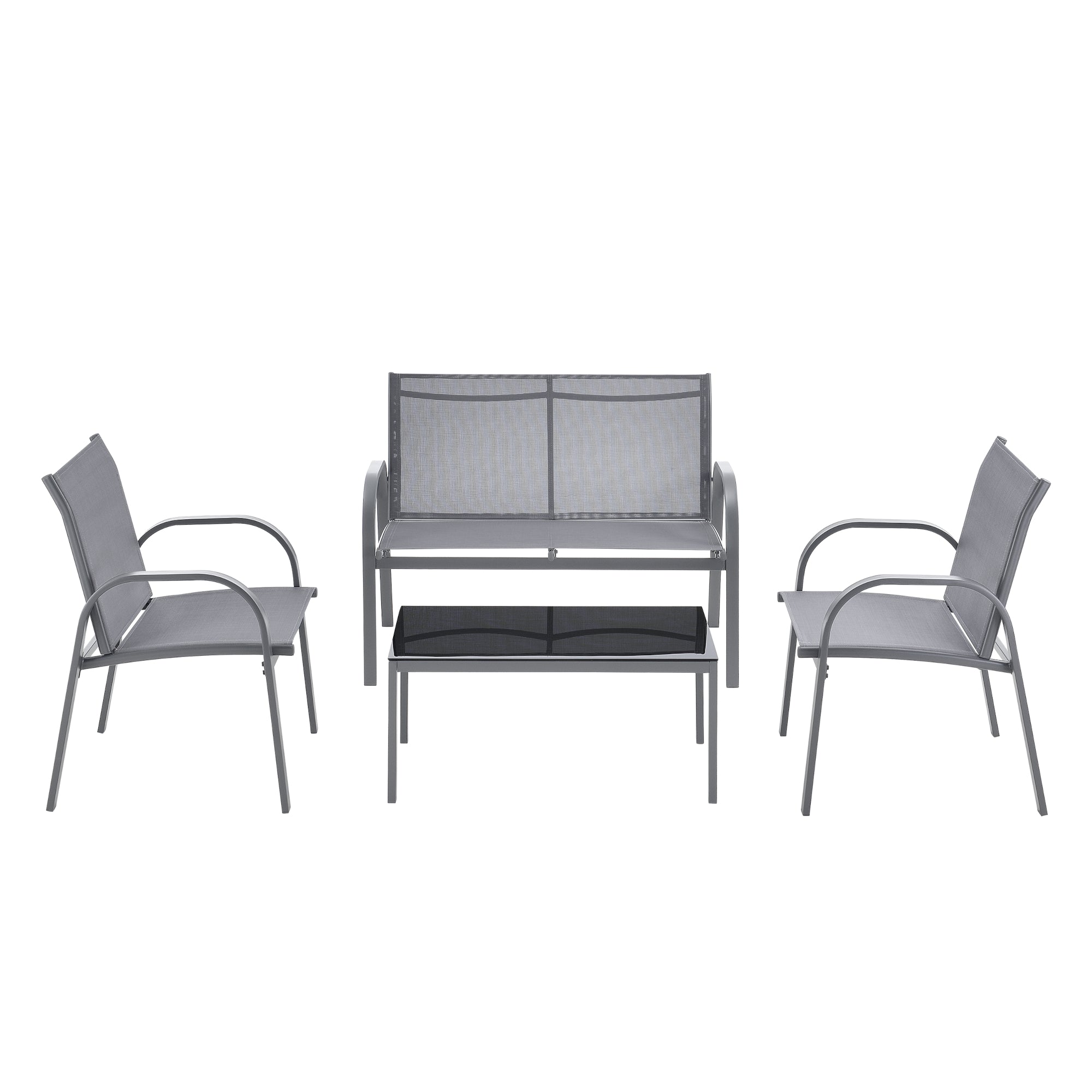 Salon de jardin de 4 meubles gagra acier PVC polyester noir gris clair 03_0008232