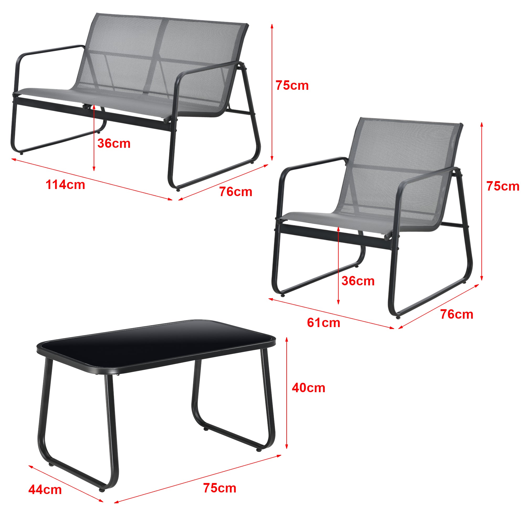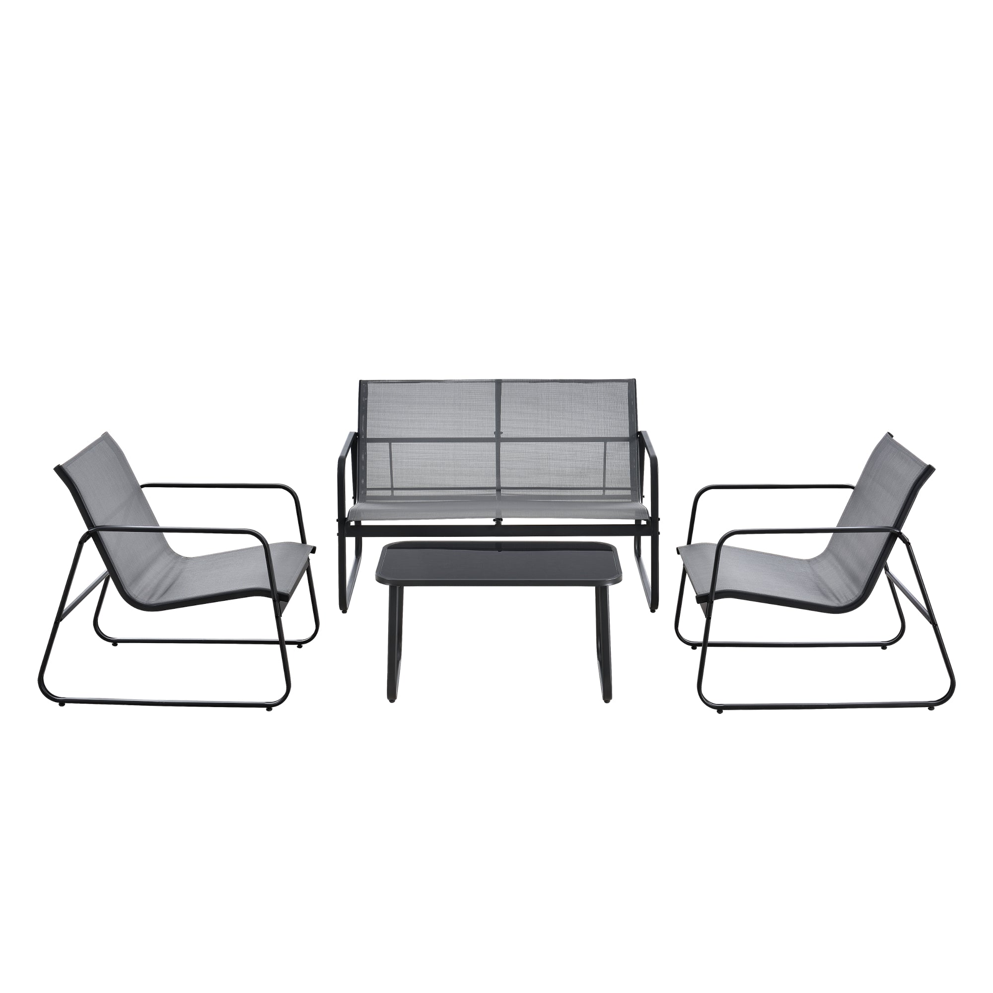 Salon de jardin de 4 meubles acier PVC noir gris clair 03_0008240