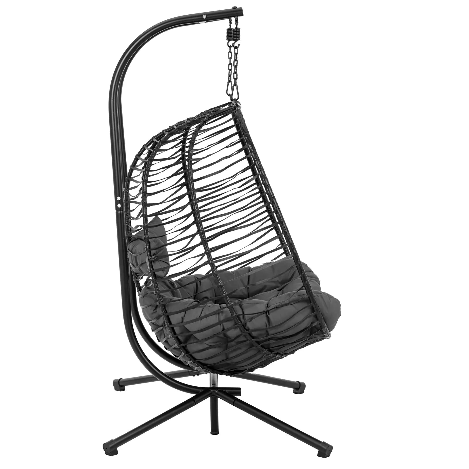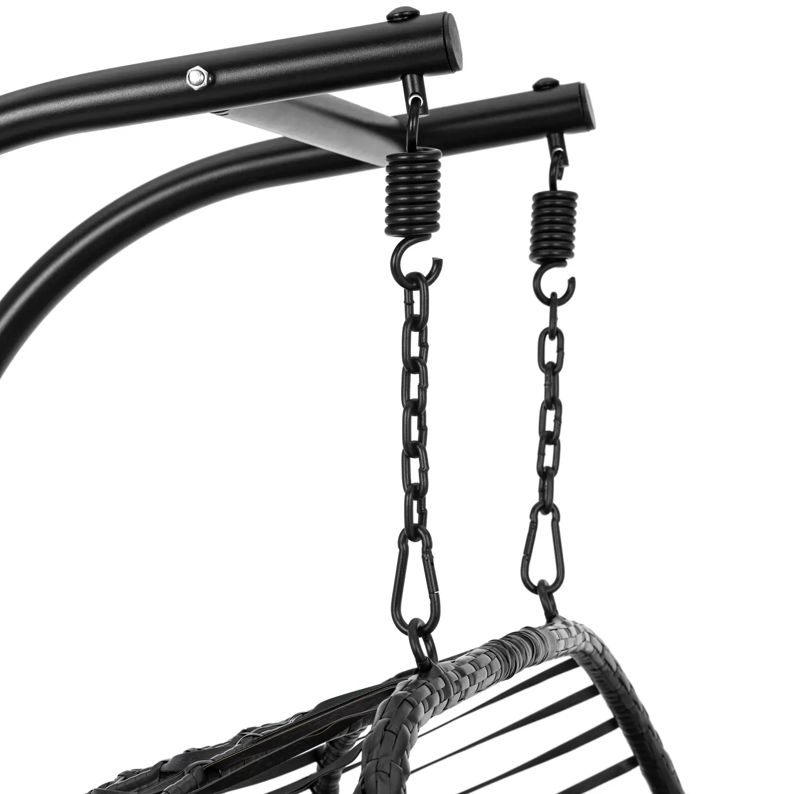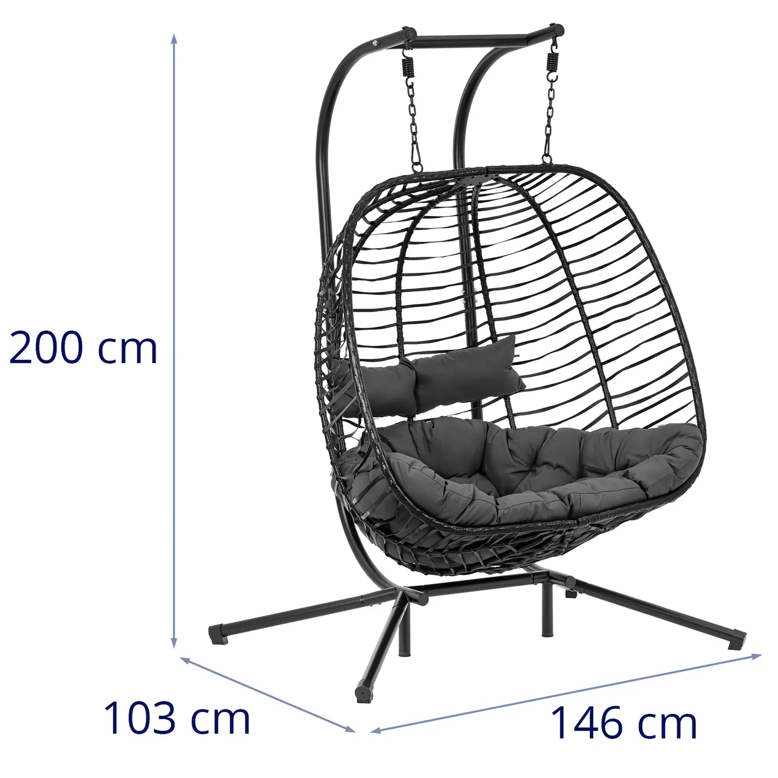 Fauteuil suspendu sur pied pour deux personnes siège pliable polyester fer peint par poudrage tissu rotin en polyester noir gris foncé 14_0009025