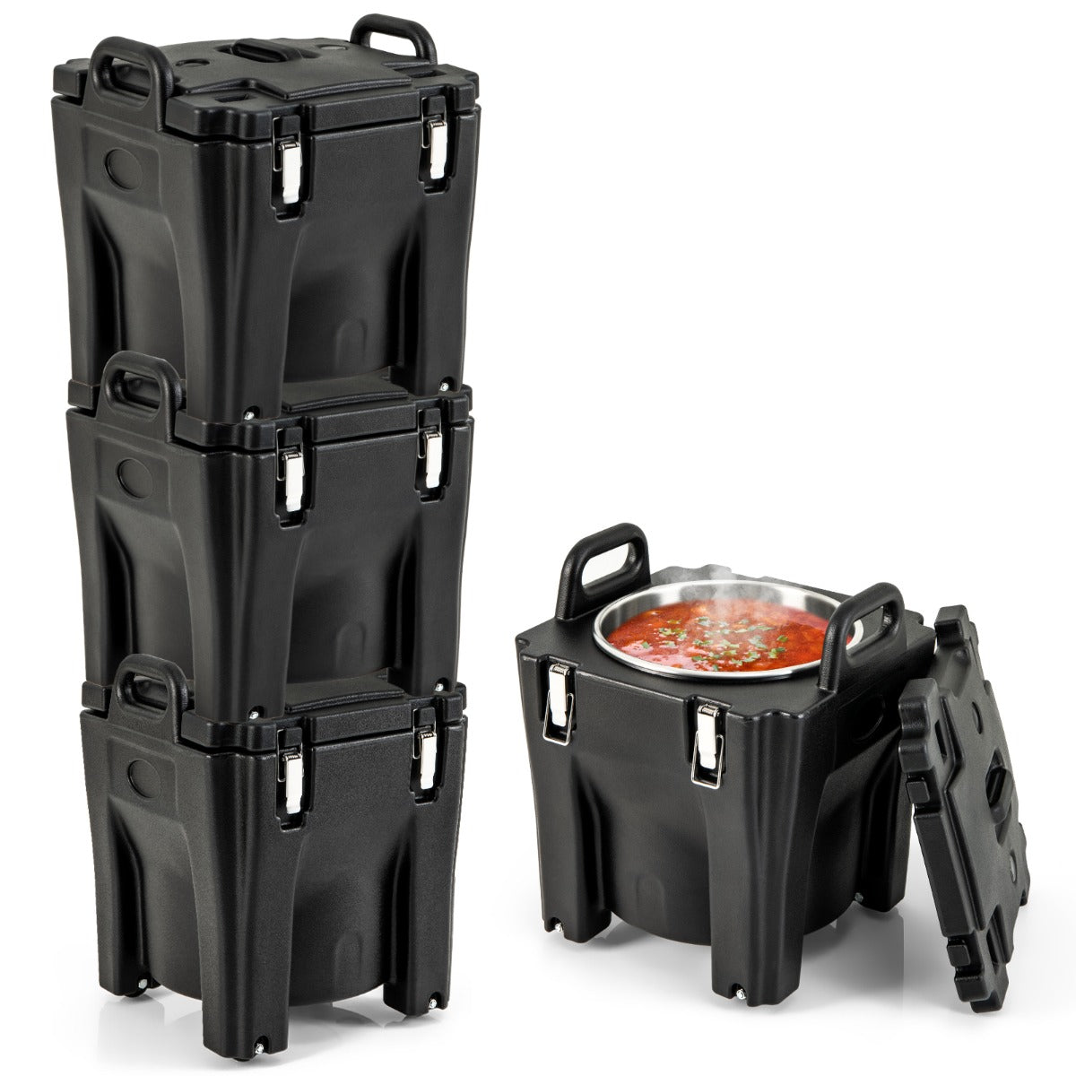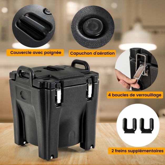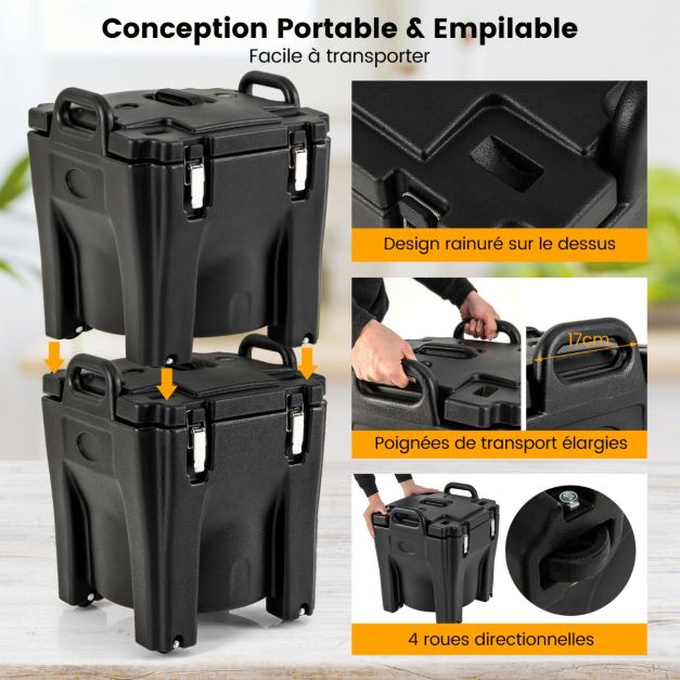 Récipient à soupe isolé chauffe-plats empilable de 30 litres conteneur isotherme portable en acier inoxydable avec 4 roues noir 20_0009181