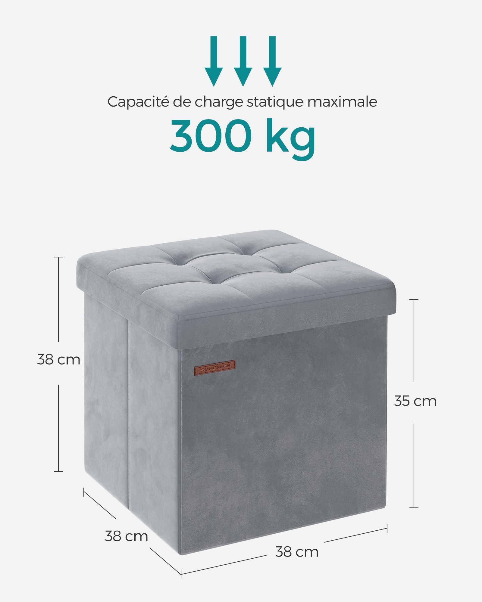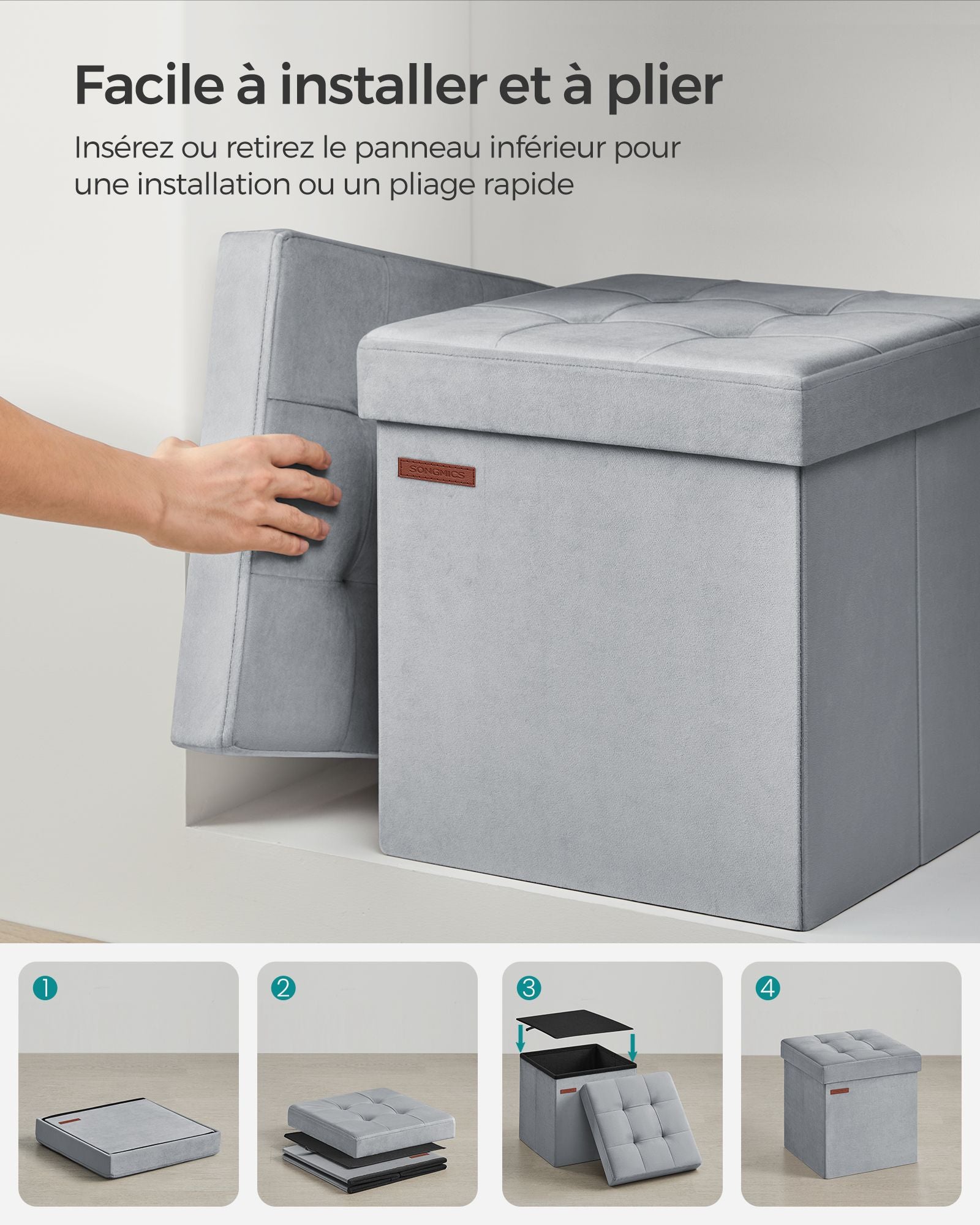Avec ses dimensions de 38 x 38 x 38 cm (P x L x H) et sa capacité totale de 43 L, ce repose-pieds pliable offre un espace pratique pour ranger draps, oreillers, couvertures, magazines et bien d’autres affaires.