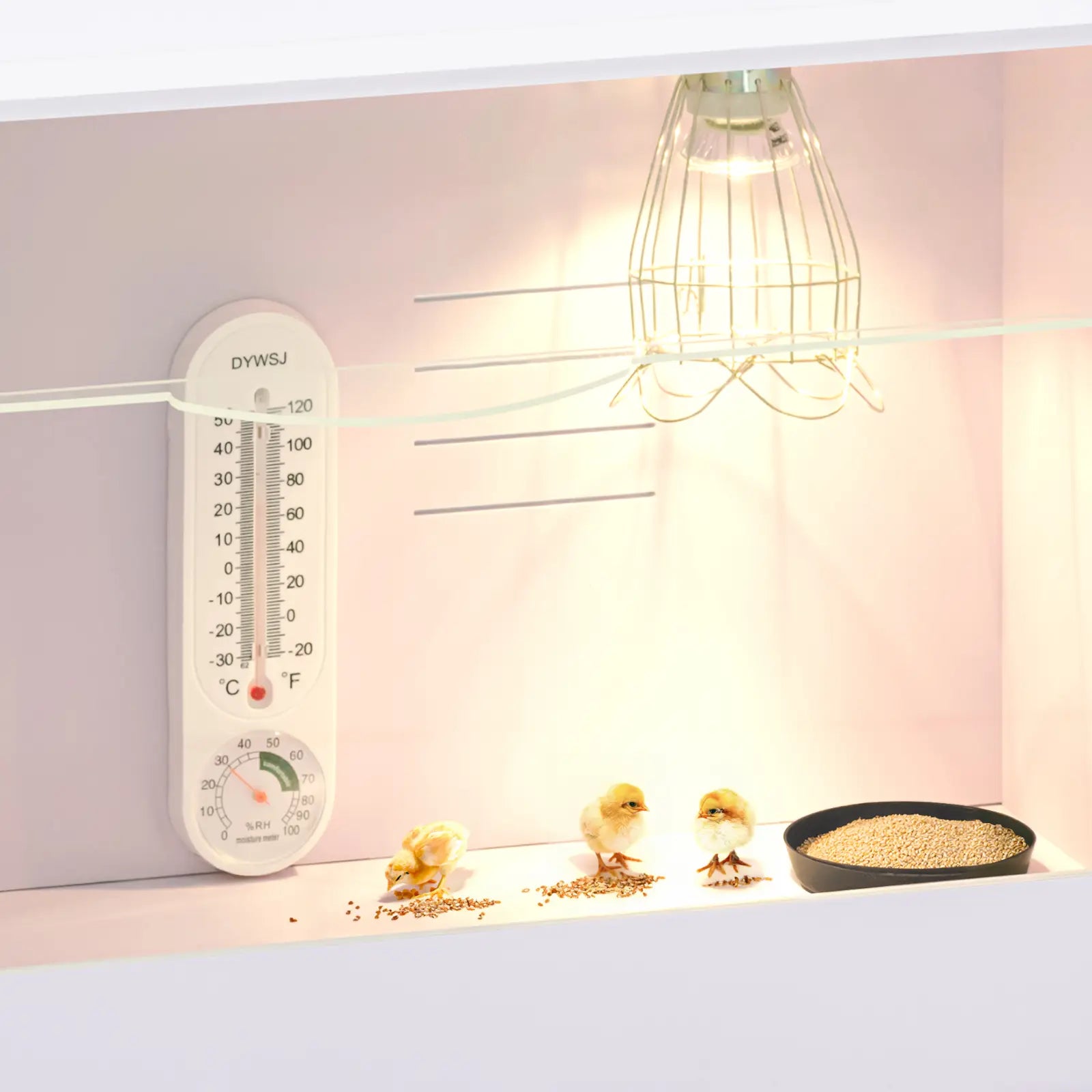 Réglages – la lumière et la chaleur dans cette cage d'élevage poussins sont réglables