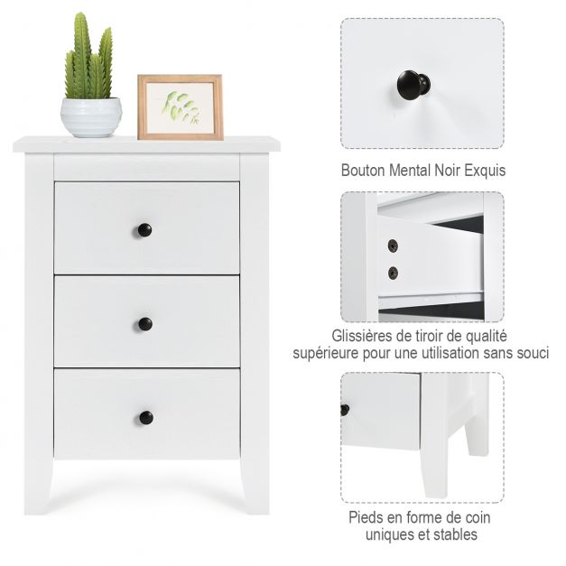 Table de nuit table de chevet moderne avec 3 tiroirs pour chambre à coucher 46x37x65cm 20_0009429