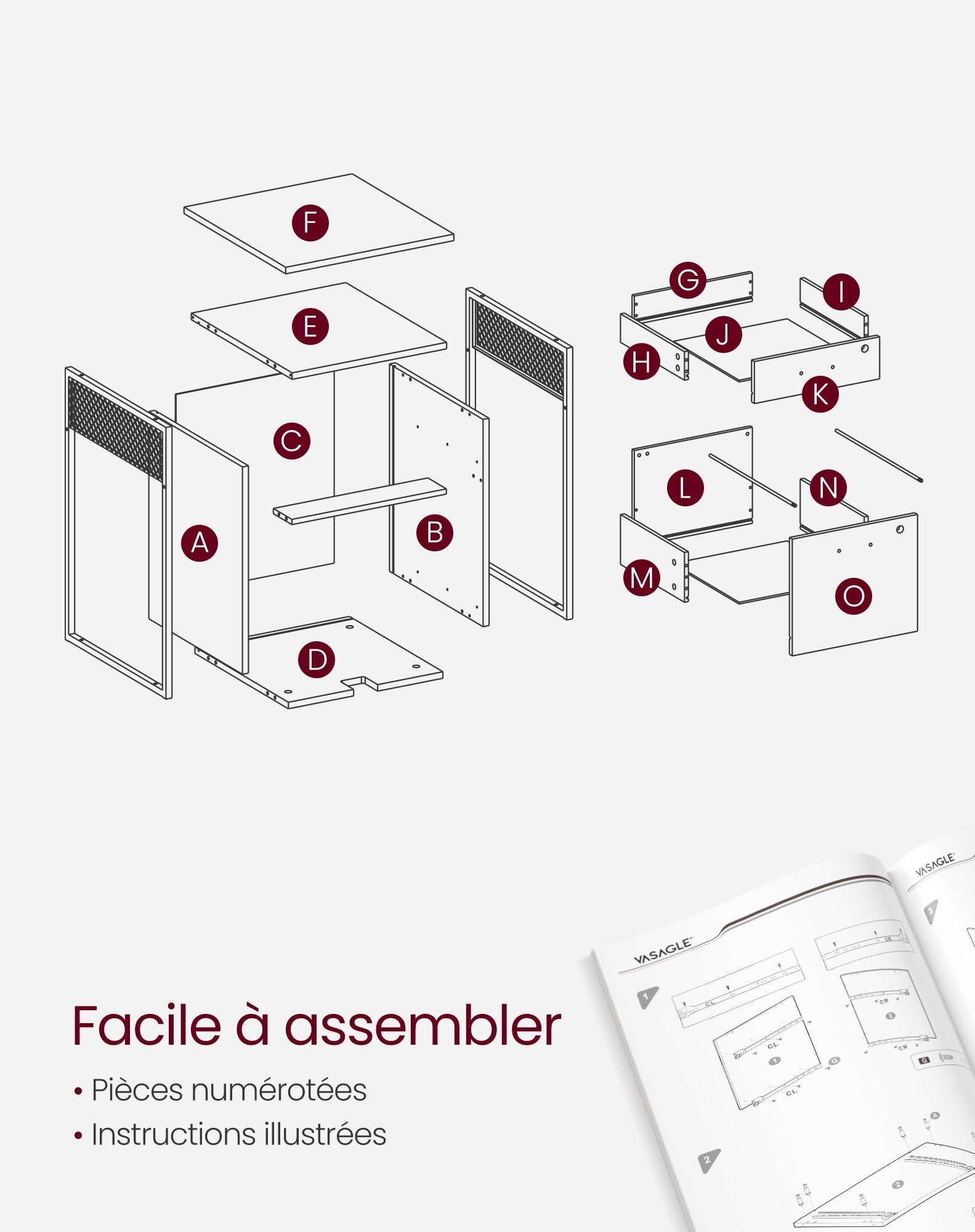 Le montage est simple et rapide grâce aux instructions claires et aux pièces numérotées. Vous pourrez profiter de ce caisson mobile avant même d’avoir décidé où le placer.