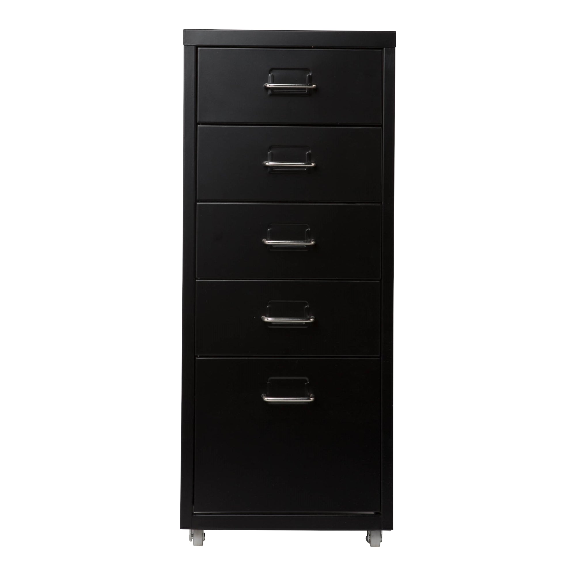 Caisson de bureau meuble de rangement pour documents dossiers fournitures de bureau à roulettes avec 5 tiroirs 69 x 28 x 41 cm noir 03_0006330