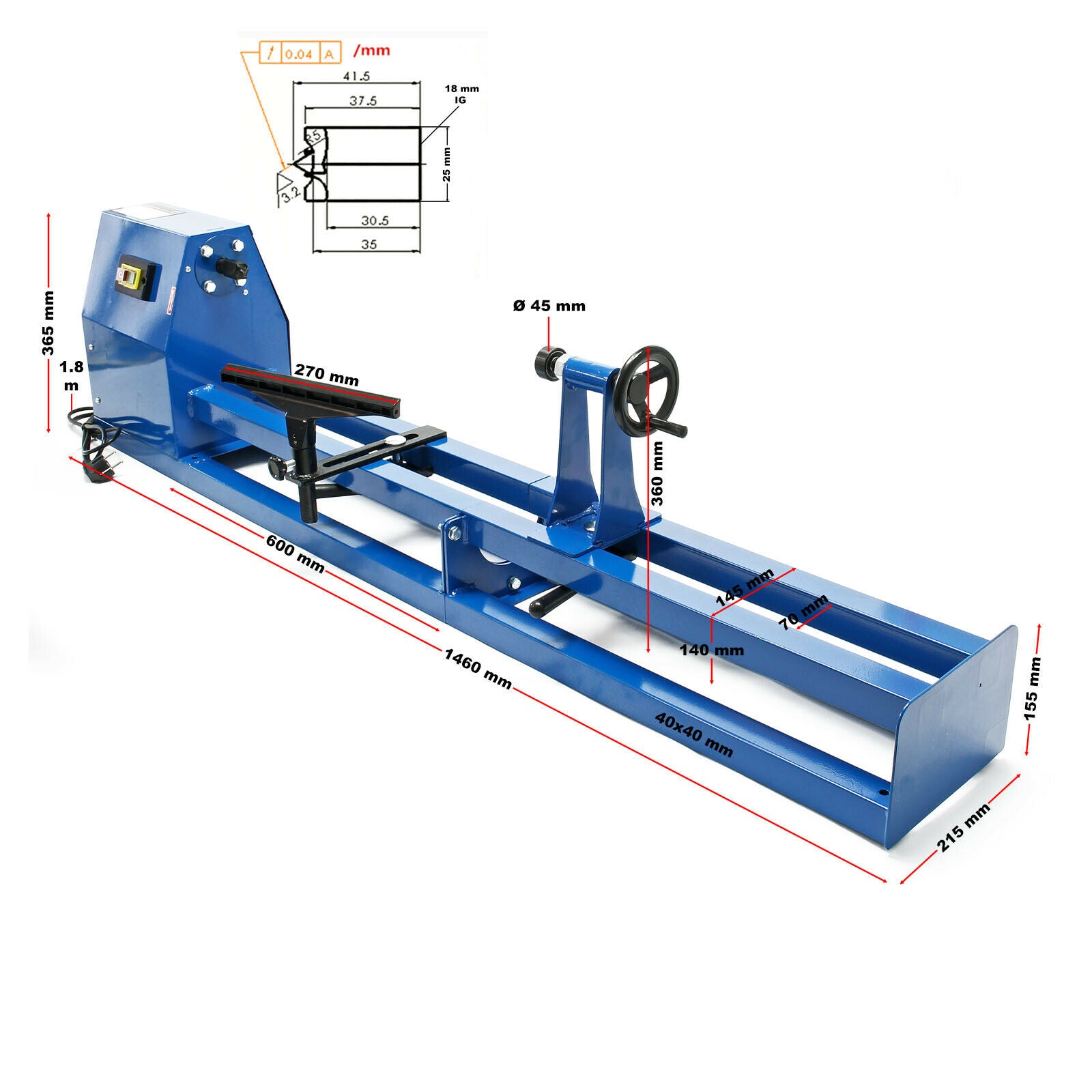 Le tour à bois vous offre une zone de positionnement extra large, qui admet les pièces à travailler d’une longueur maximale de 1000mm ; c’est grâce au contre-plateau fourni que le diamètre maximal est de 350mm.