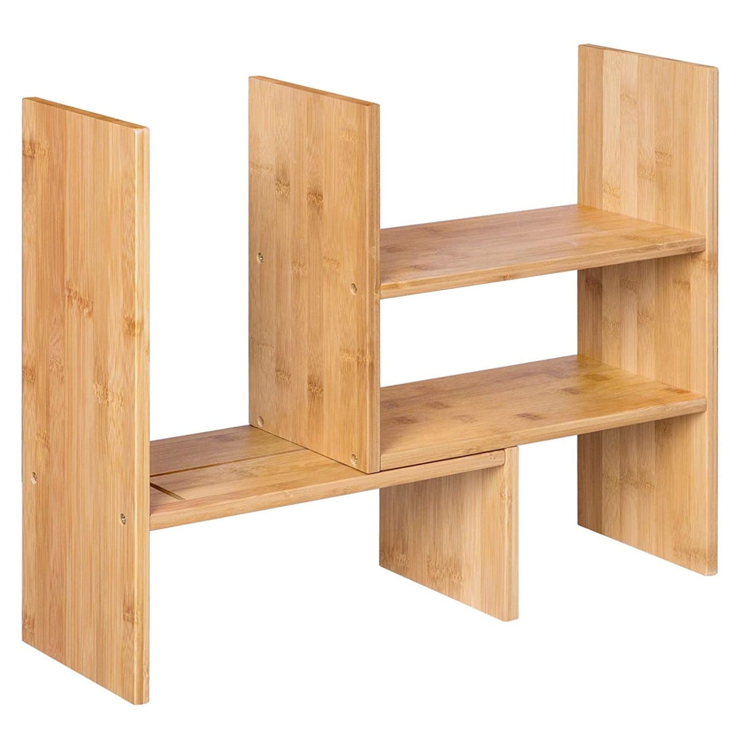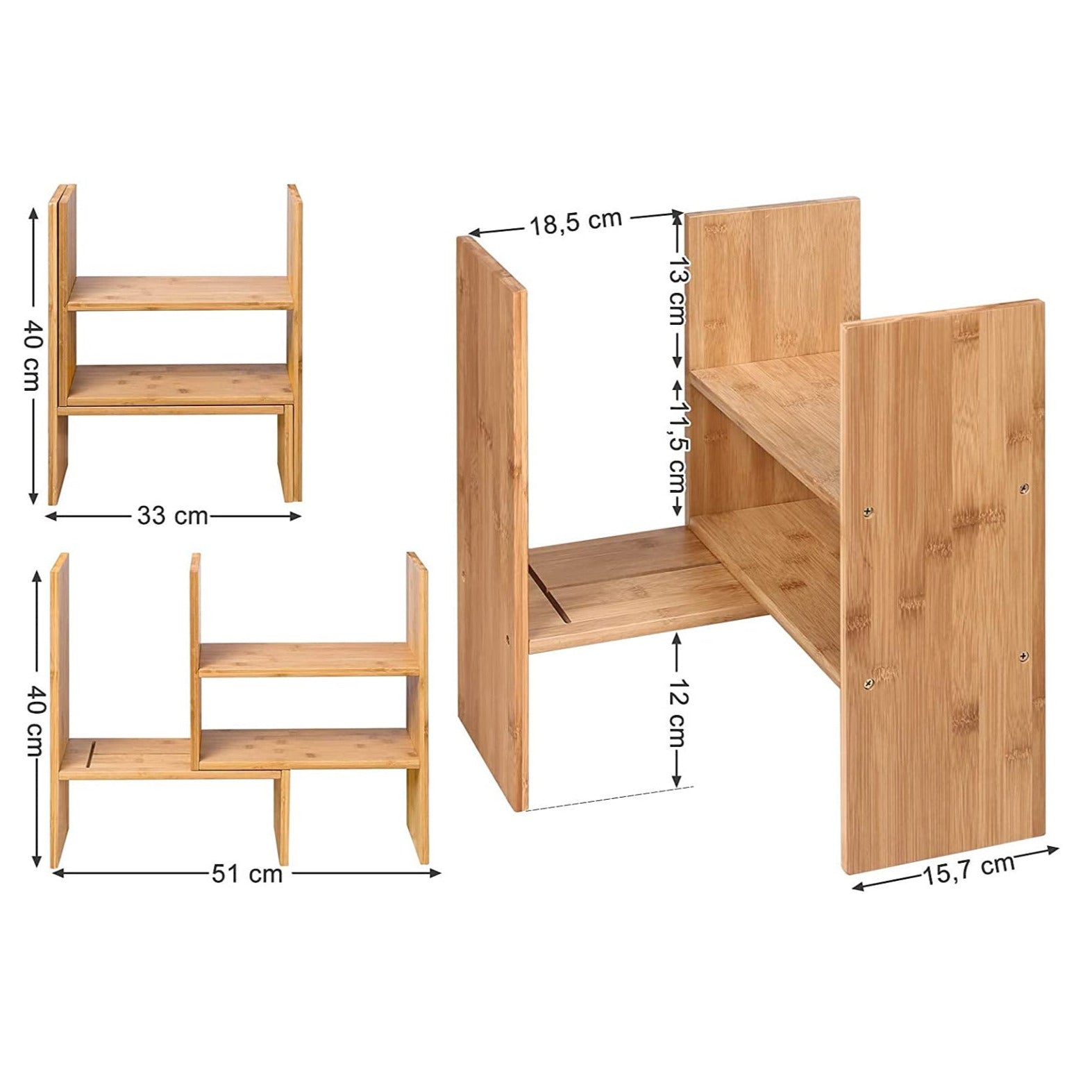 Organisateur de bureau modulable à 3 formes rangement de bureau réglable peu encombrant petite décoration de bibliothèque pour bureau cuisine et salle de bain 64,7 cm bambou naturel 12_0001497