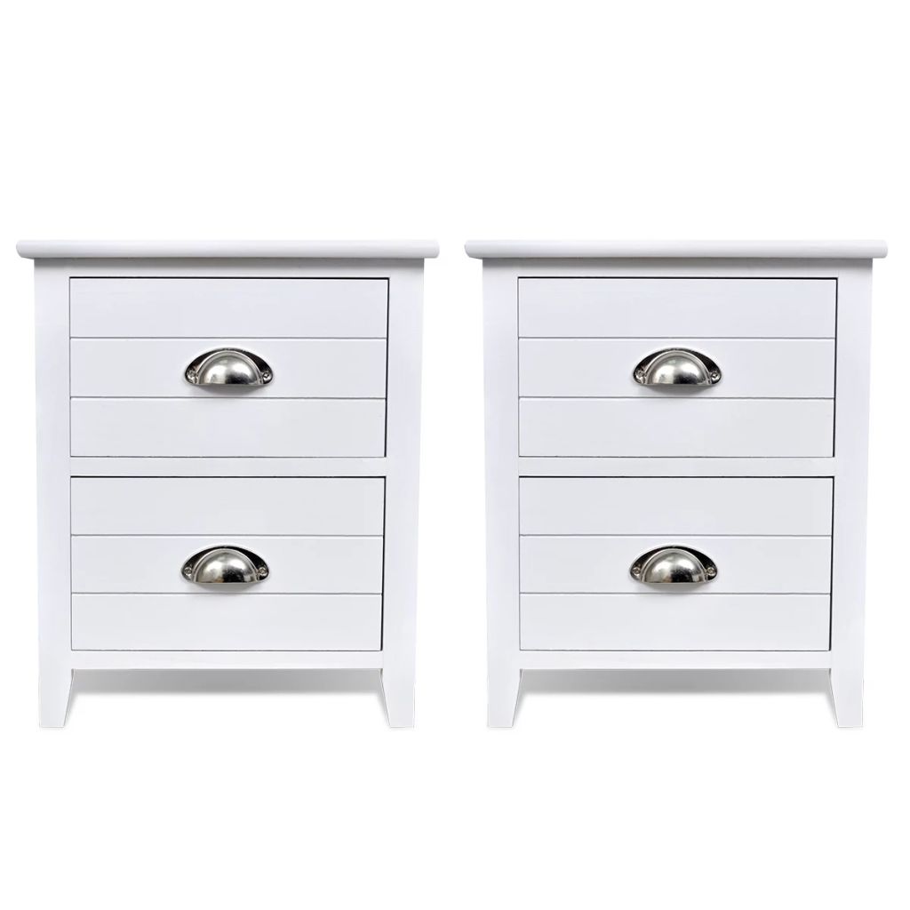Lot de 2 tables de nuit chevet commode armoire meuble chambre avec 2 tiroirs blanc 1402121