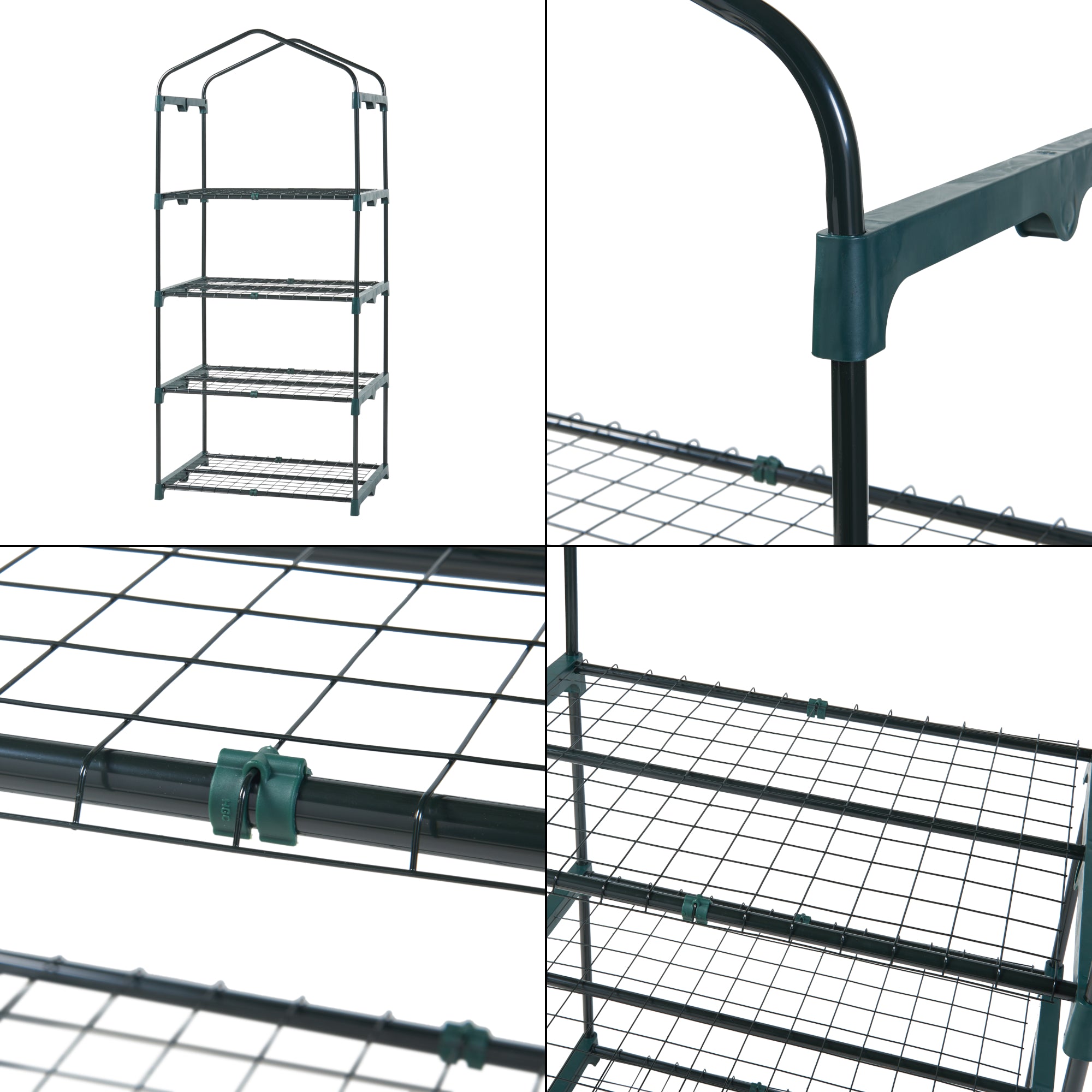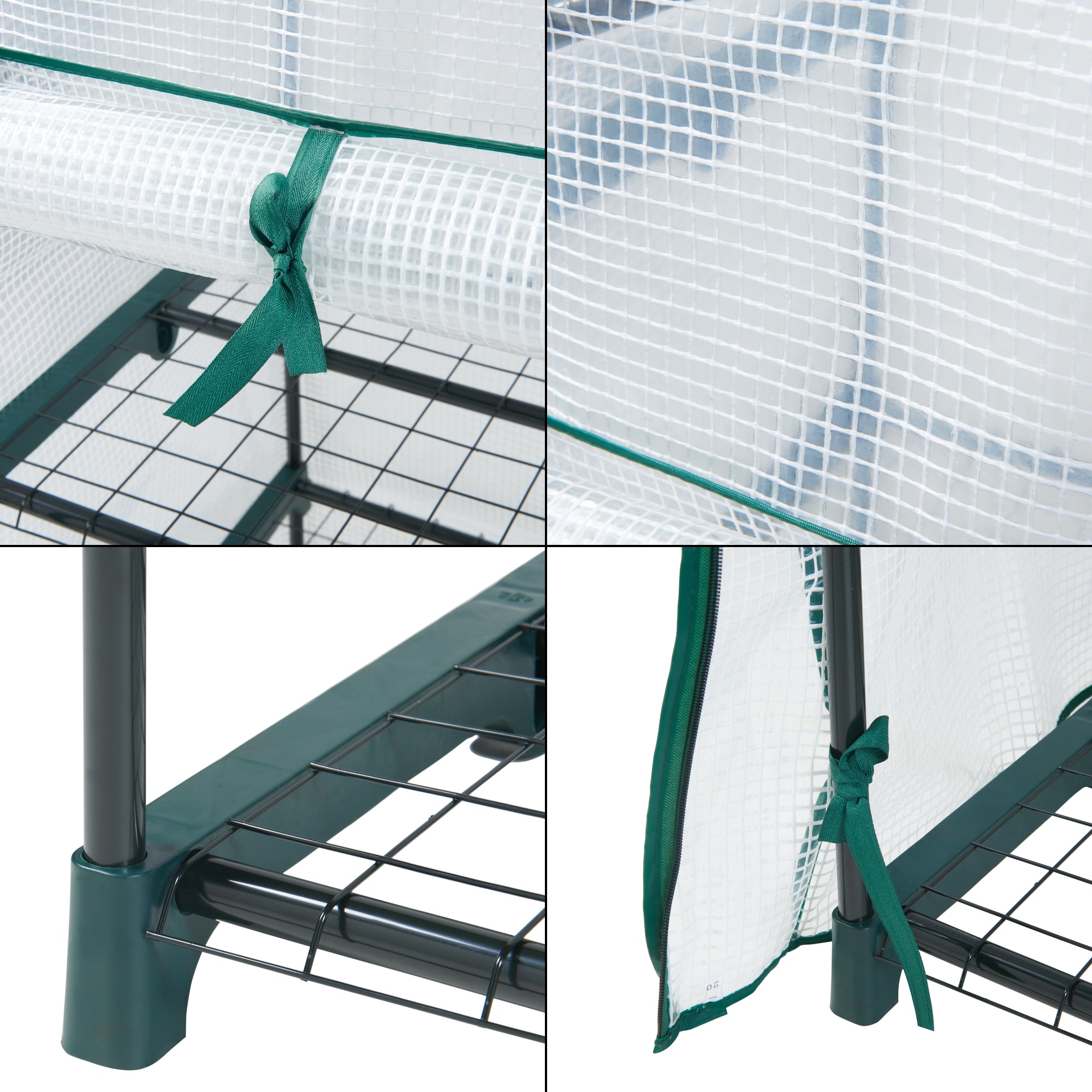 Cette serre de jardin polyvalent peut être monté facilement grâce au système d'emboîtement en peu de temps. Les 4 étagères en treillis offrent de la place pour vos plantes, semis de légumes et herbes aromatiques. Elle est un abri optimal contre la pluie, le rayonnement solaire intense et les visiteurs indésirables du monde animal, peu importe ou vous installez votre coin vert : dans le jardin, sur la terrasse, dans la cour ou sur le balcon.Le toit à deux pentes permet à l'eau de pluie de s'ecoule et évite l'accumulation et la stagnation de l'eau. La couverture en polyéthylène laisse passe la lumière mais absorbe les rayons UV nocifs.La porte enroulable à fermeture éclair facilite l'arrosage et la fertilisation des plantes. Elle assure l'aération et le réglage de température intérieure contrôlés favorisant le bon entretien des plantes.