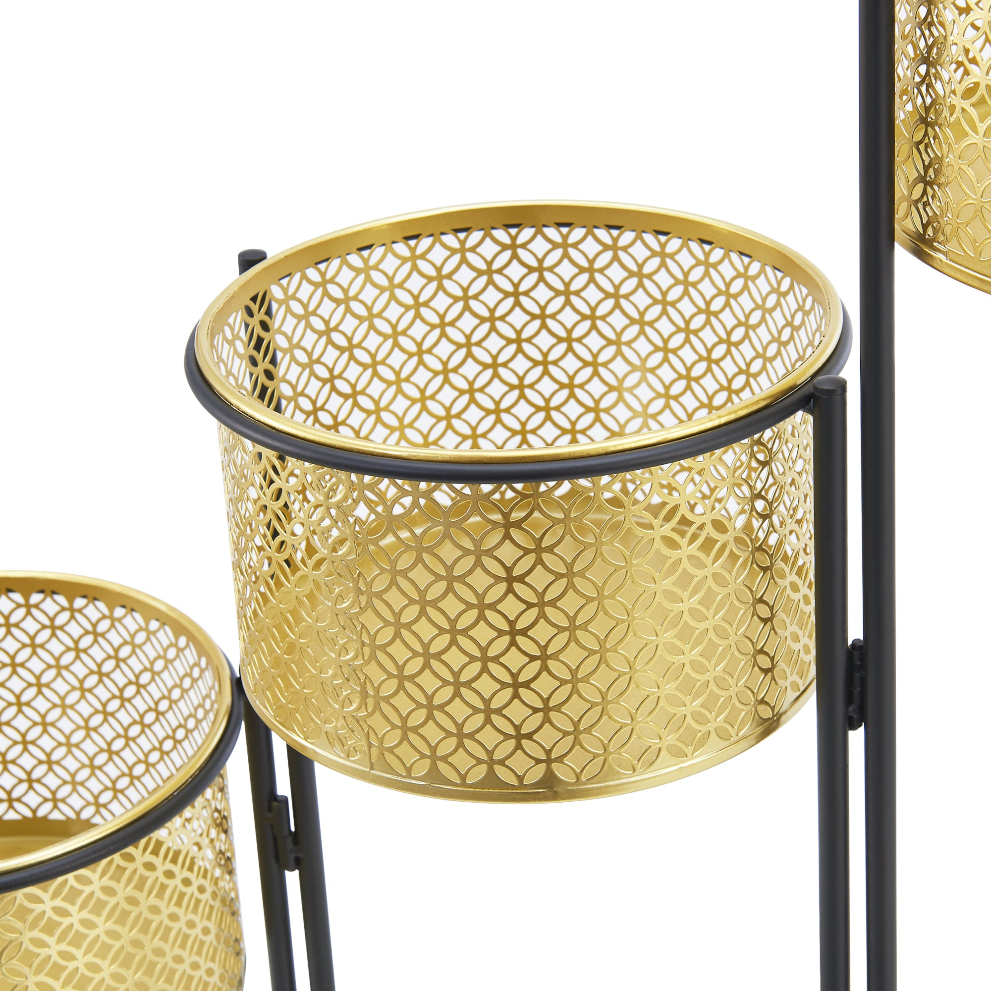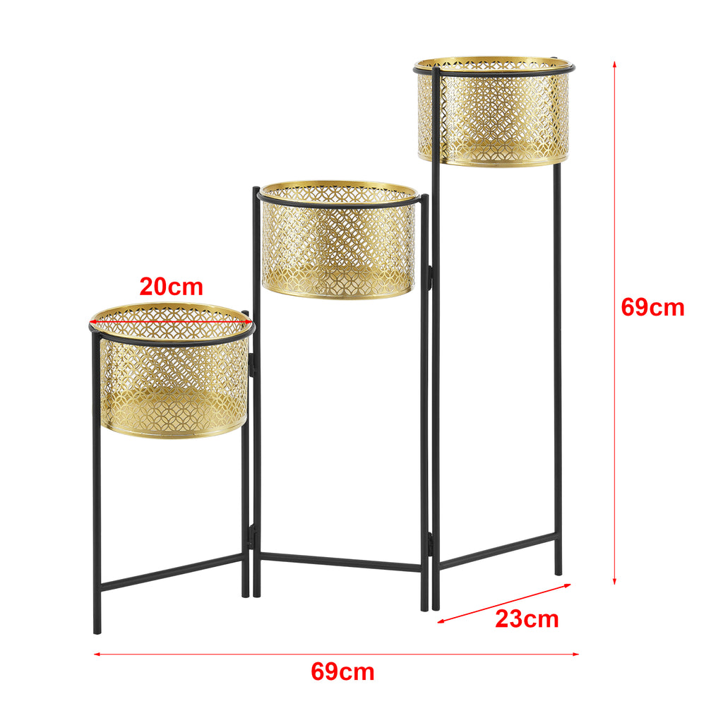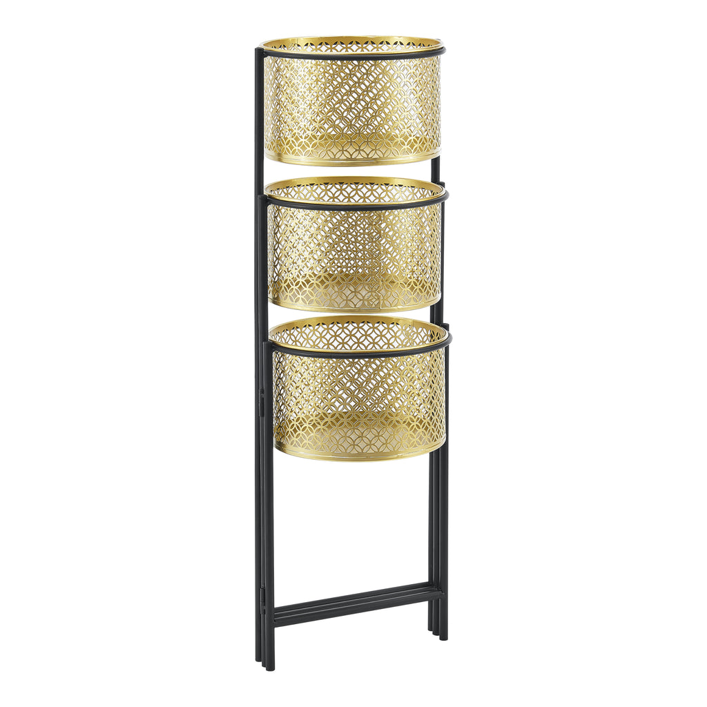 Support de plante (à 3 cache-pots) pliable noir laiton 03_0007682