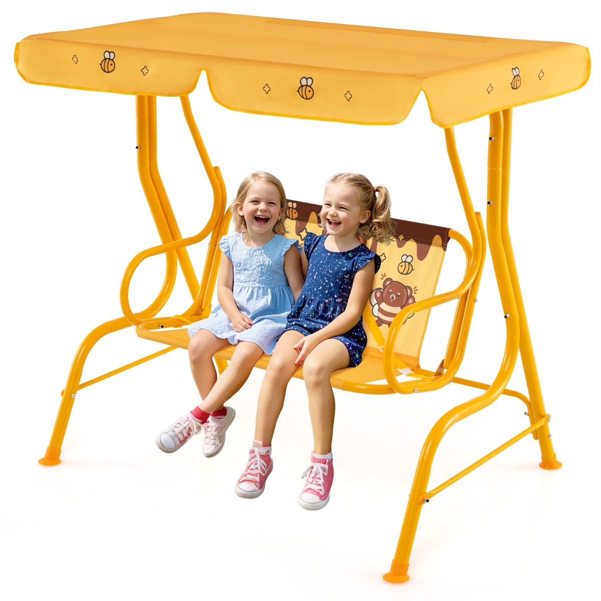 Balançoire pour enfants chaise de porche 112 x 76,5 x 111 cm avec sécurité ajustable et ambiance joyeuse en métal jaune 20_0010527